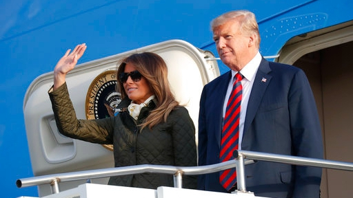 First lady Melania Trump and President Donald Trump walk across the tarmac and to their vehicle during their arrival on Air Force One at Glasgow Prestwick Airport in Scotland, July 13, 2018. /AP Photo