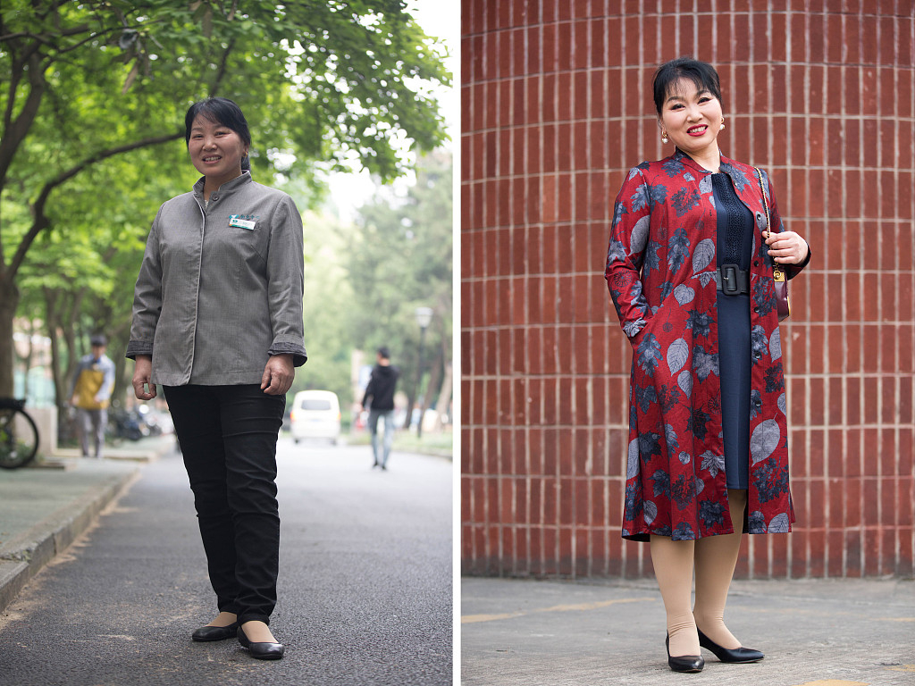They work on campus as cleaners or dorm supervisors, wearing grey uniforms. So the students decided to dress them up and record their beauty with photos. /VCG Photo