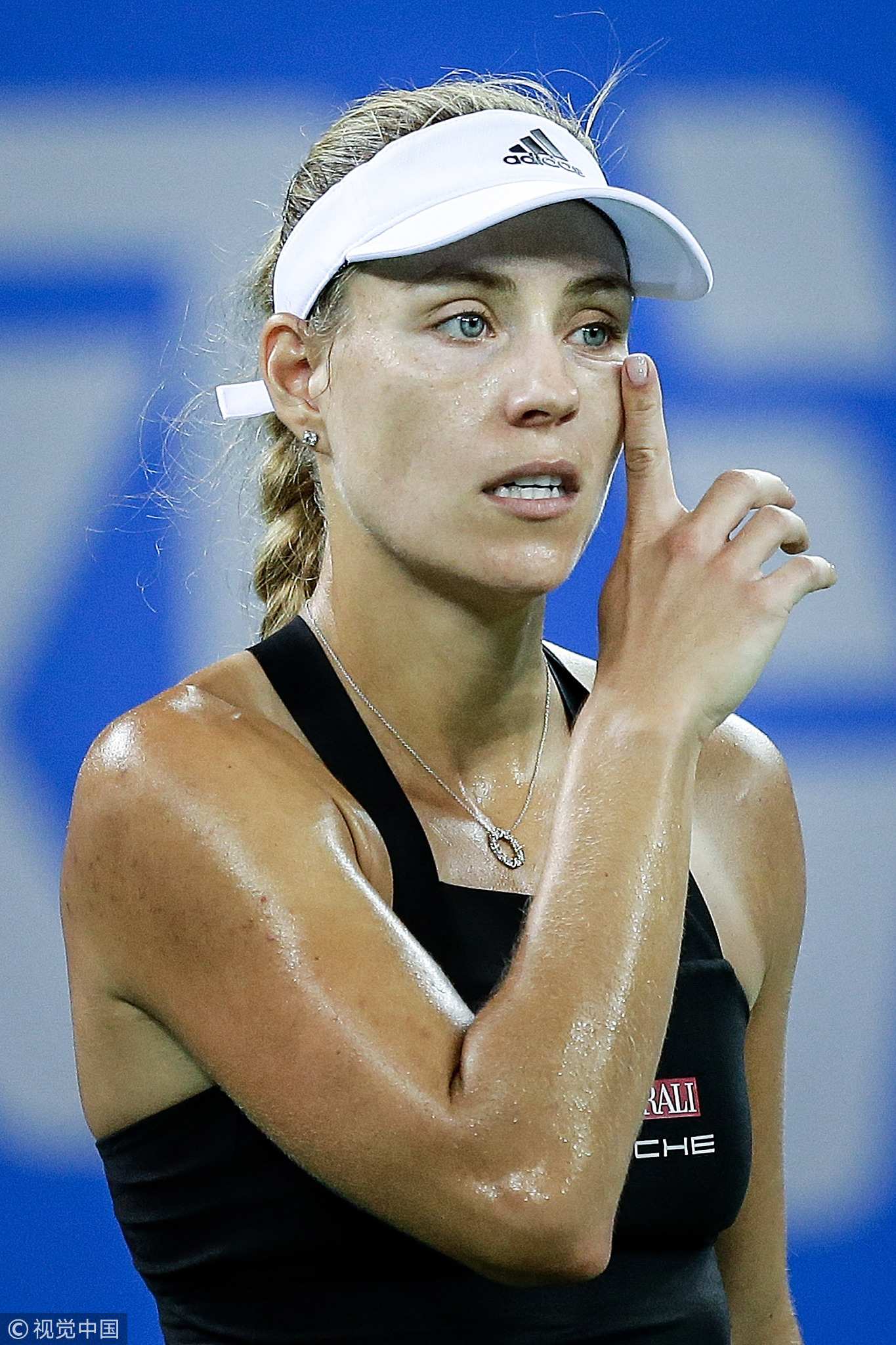 Germany's Angelique Kerber reacts against Australia's Ashleigh Barty during 2018 Wuhan Open at Optics Valley International Tennis Center, Wuhan, central China, September 26, 2018. /VCG Photo