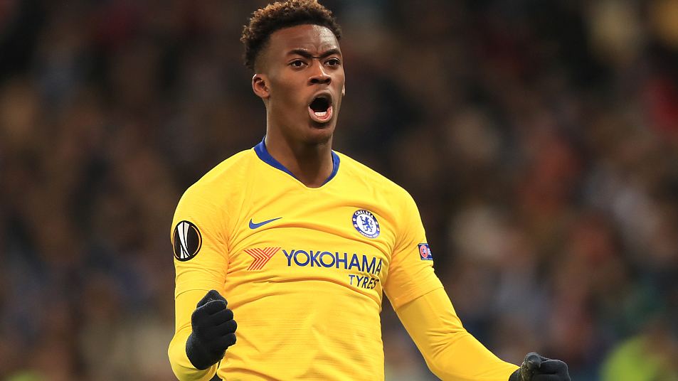 Callum Hudson-Odoi during the first leg of the Europa League clash between Chelsea and Dynamo Kiev at Stamford Bridge on March 7, 2019. /VCG Photo
