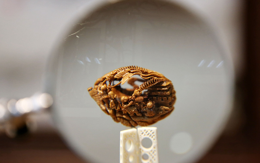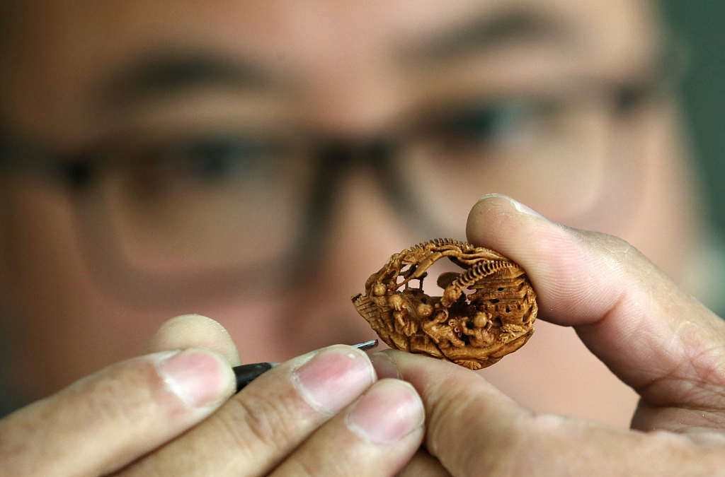 Walnut carving is a traditional Chinese folk craft of miniature sculpture and is listed as a national intangible cultural heritage. /VCG Photo