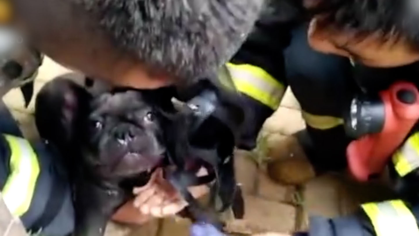 After putting out a blaze at an apartment, firefighters found two puppies inside. They carried the puppies downstairs and started to give them CPR. One of the firefighter used his own respirator to help give the dogs oxygen. Now the two puppies are out of danger.