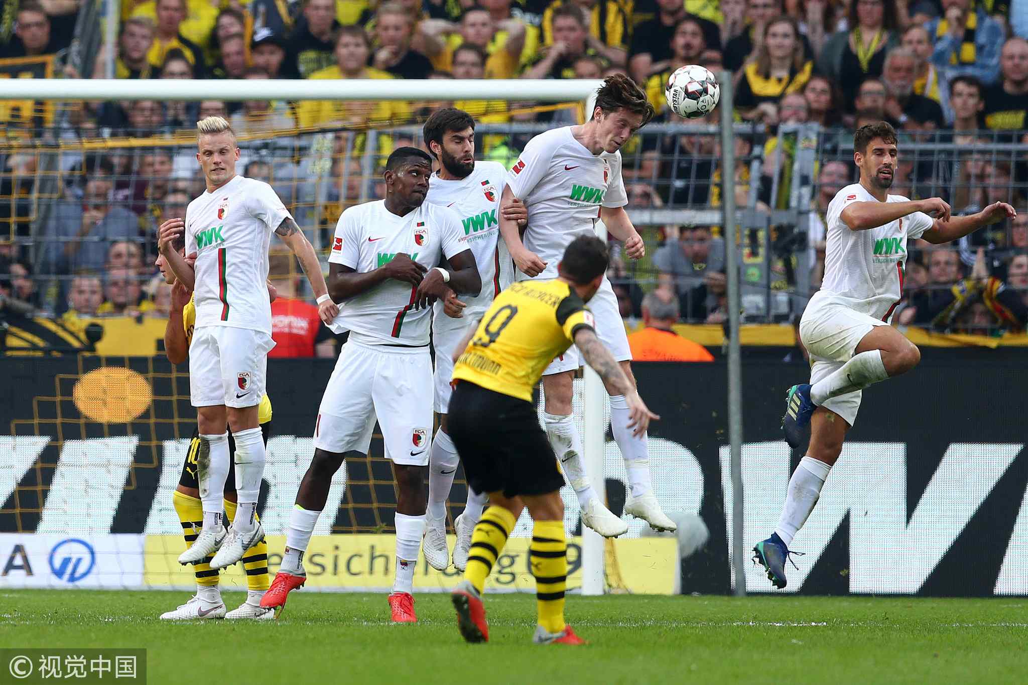 Paco Alcacer of Borussia Dortmund scores his team's fourth goal during their Bundesliga match against FC Augsburg at Signal Iduna Park in Dortmund, Germany, October 6, 2018. /VCG Photo