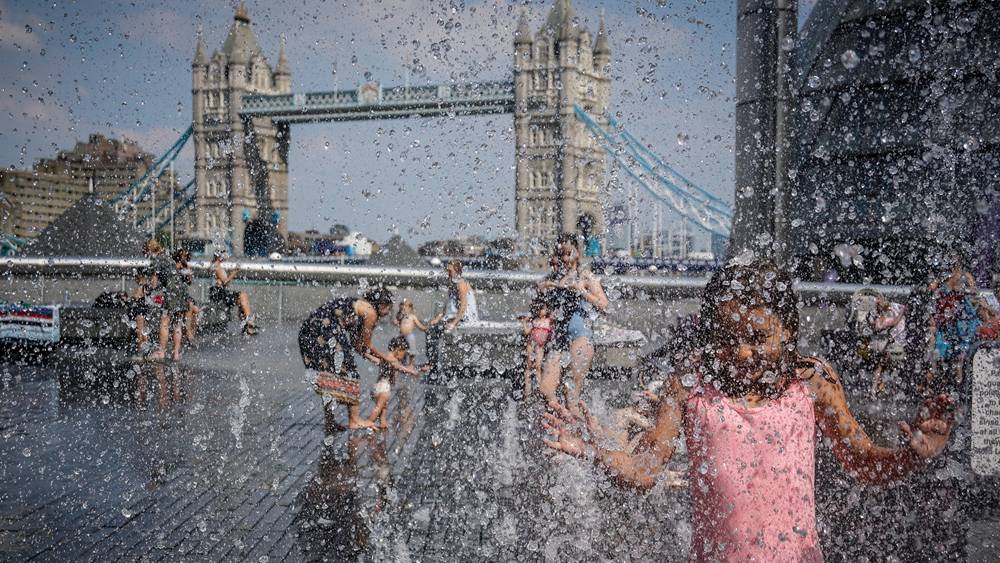 Britain’s prolonged heatwave has turned green grass brown, triggered an impending hose pipe ban in the northwest of England, and prompted a warning from the government for people to keep out of the sun.