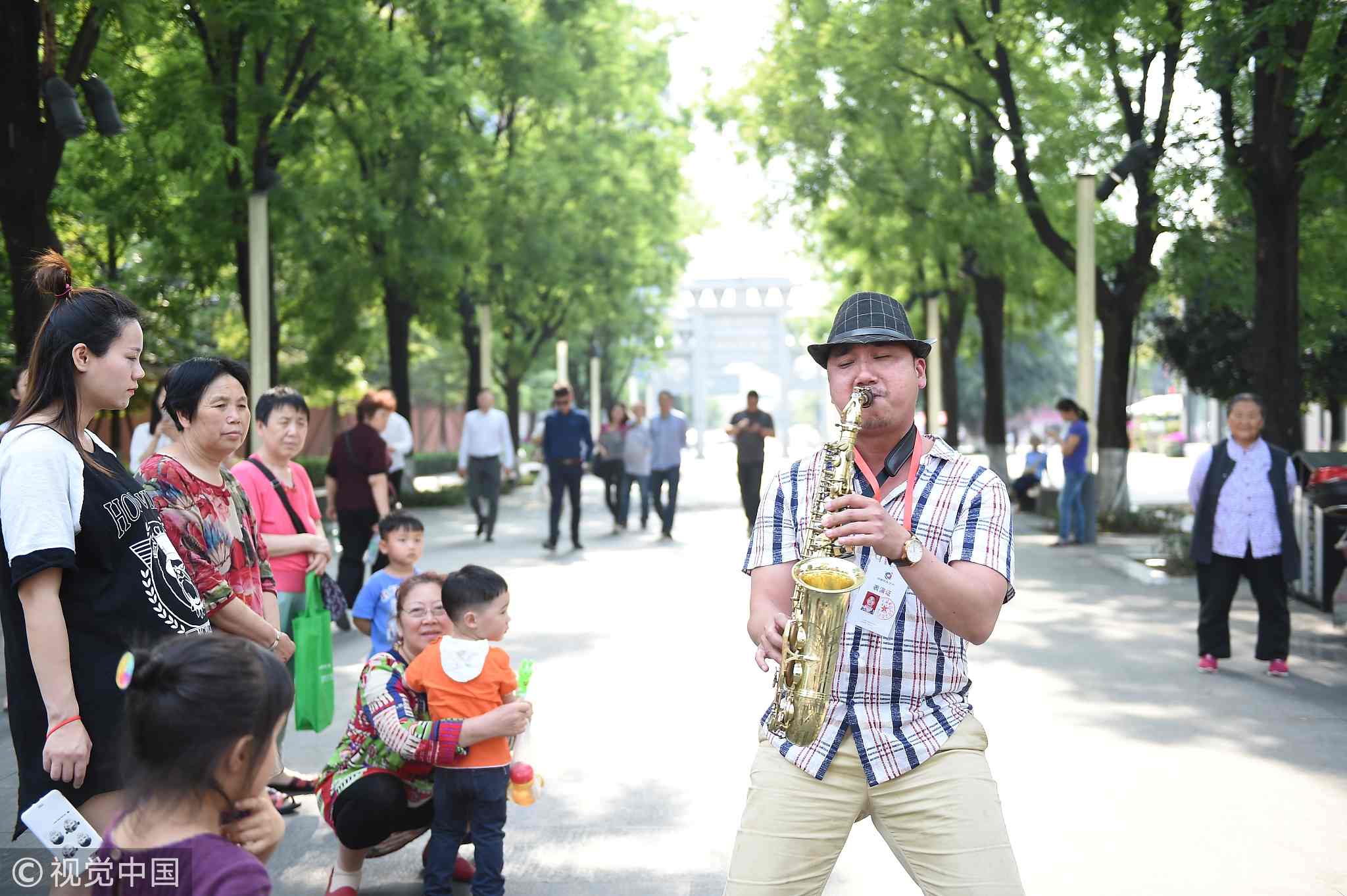 A licensed saxophonist performs in Chengdu City. /VCG Photo