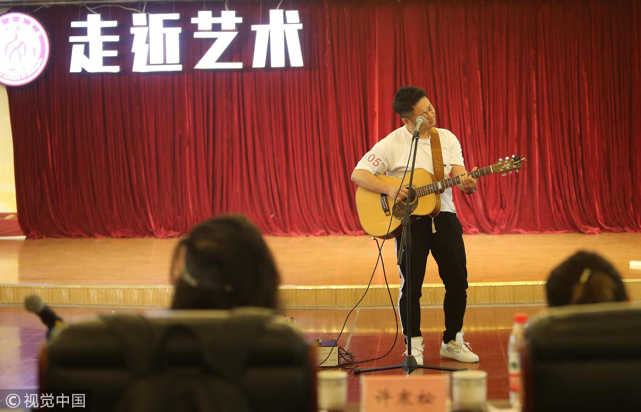 A musician competes for a secure spot to perform on the street of Chengdu City. /VCG Photo