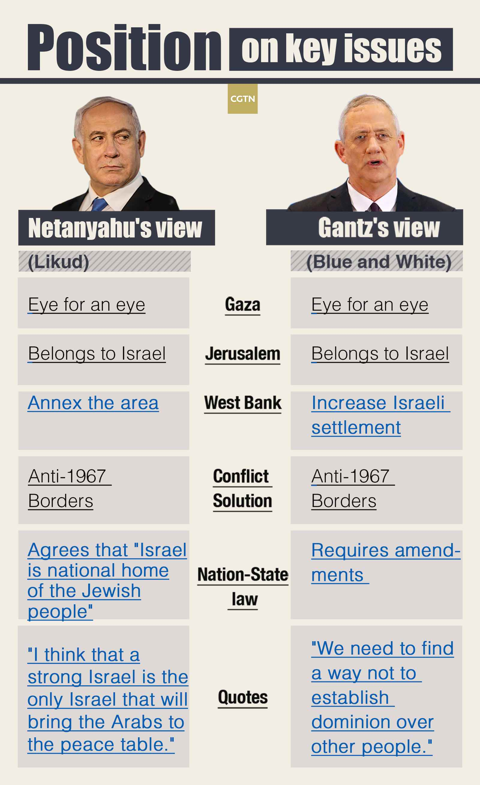More than 40 parties are vying for the 120 seats in the one-chamber Knesset (parliament). Recent opinion polls show a tight race between Gantz's centrist Blue and White with about 30 seats and Netanyahu's right wing Likud with some 28 seats.