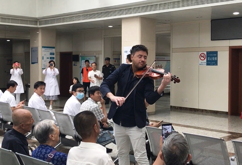 You might not expect a hospital to be the location for a violin performance, but Australia's Patrick Roberts played his favorite songs for patients at the Cancer Hospital at the Chinese Academy of Medical Sciences in Beijing on Wednesday.