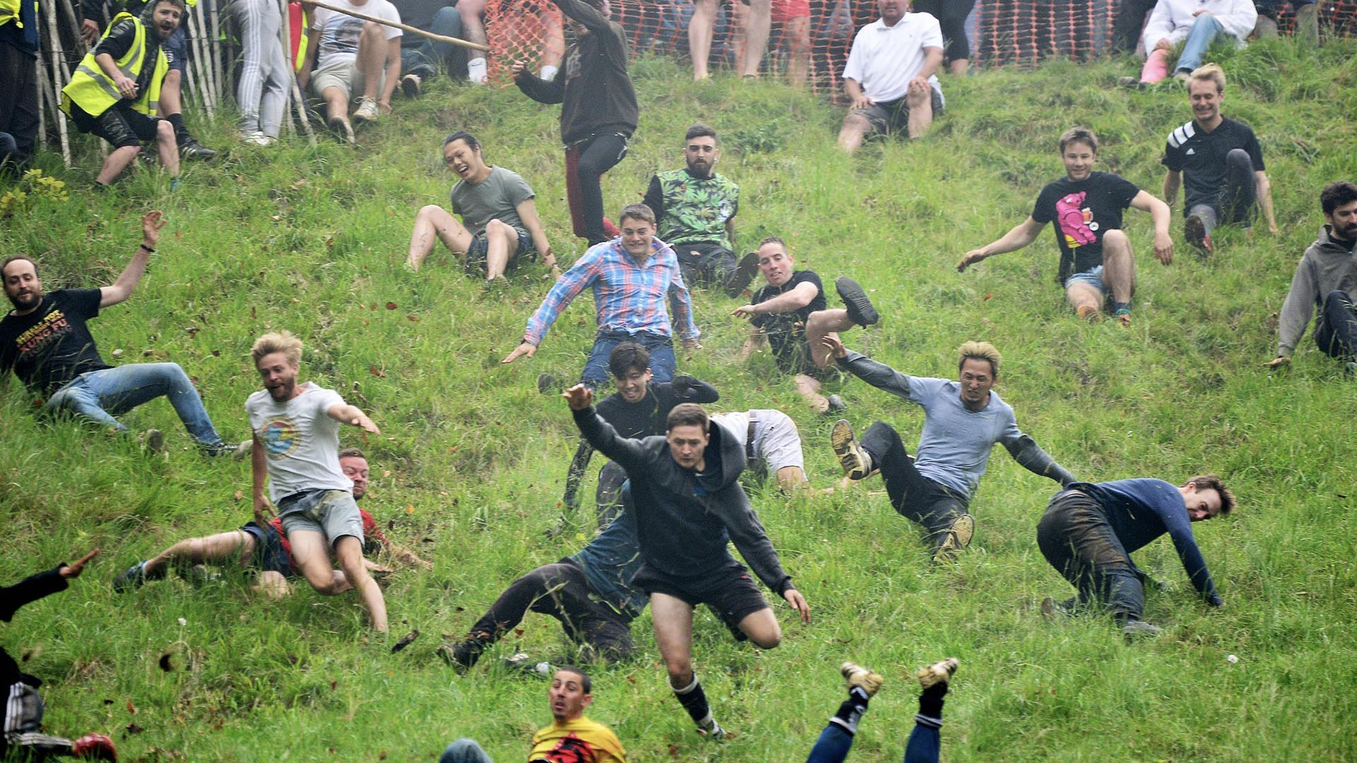 Thousands gathered on Cooper's Hill in southwestern England for the annual Cheese Rolling event on the last Monday of May, a public holiday. The contest sees men and women risking injury to chase cheese wheels down the hill, a tradition that dates back to the 1800s.