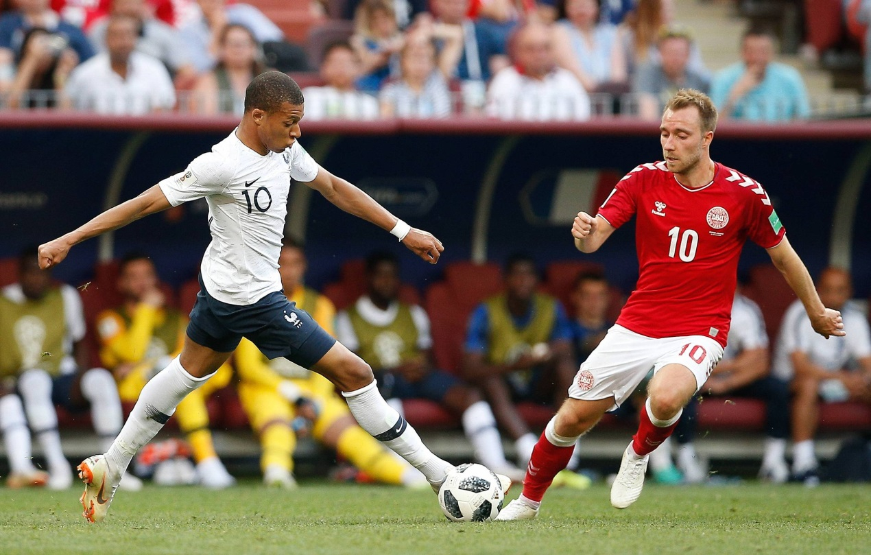 Kylian Mbappe of France contests ball with Denmark’s Christian Eriksen. /VCG Photo