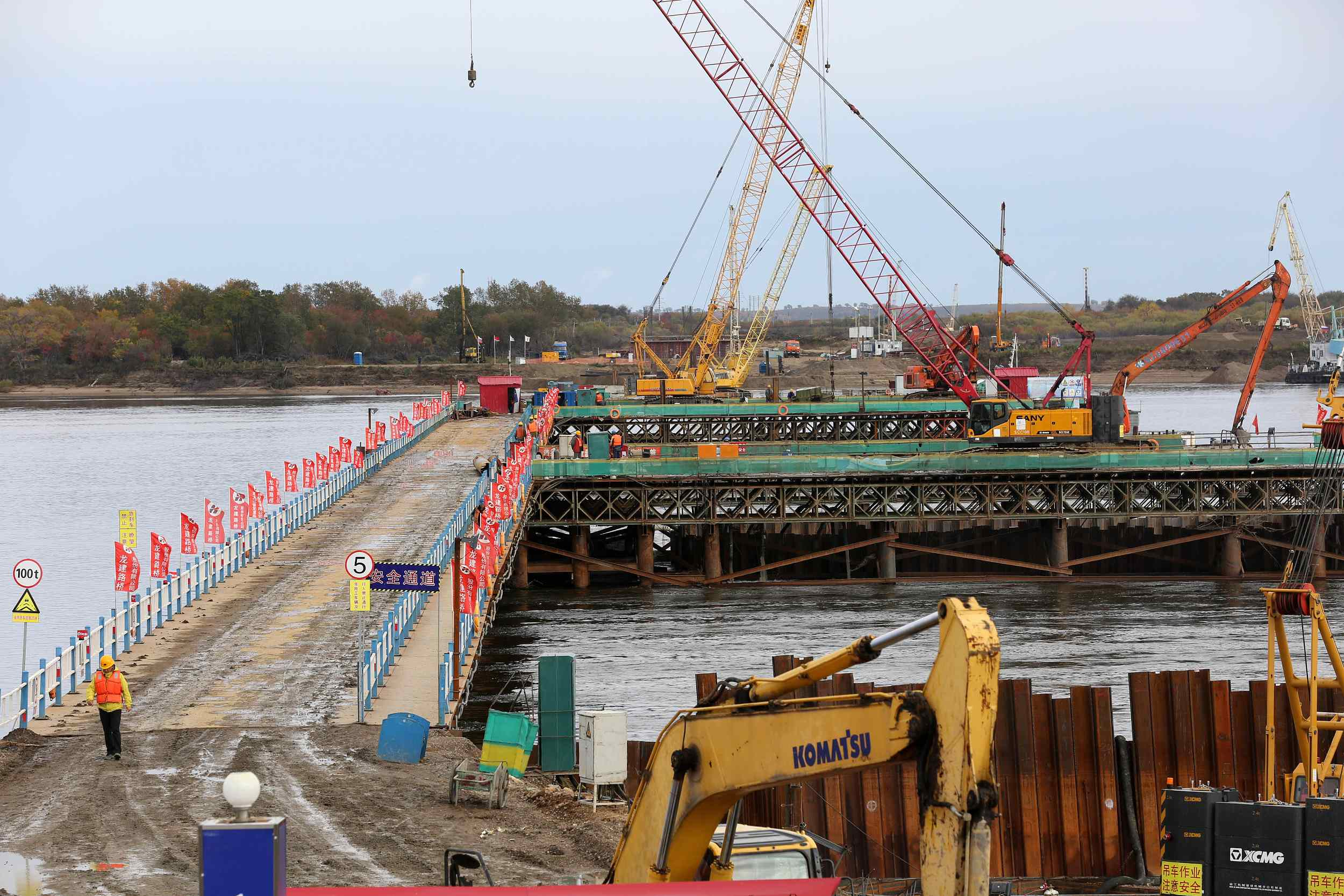 The first China-Russia highway bridge is under construction. /VCG Photo