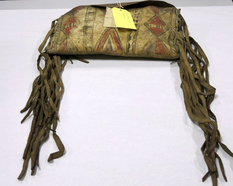 A purse collected by the Rev. Robert Summers from the Confederated Tribes of the Grand Ronde in the 1870s sits in a table in Grand Ronde, Ore., in preparation for an exhibit at the tribe's newly expanded museum. /AP Photo