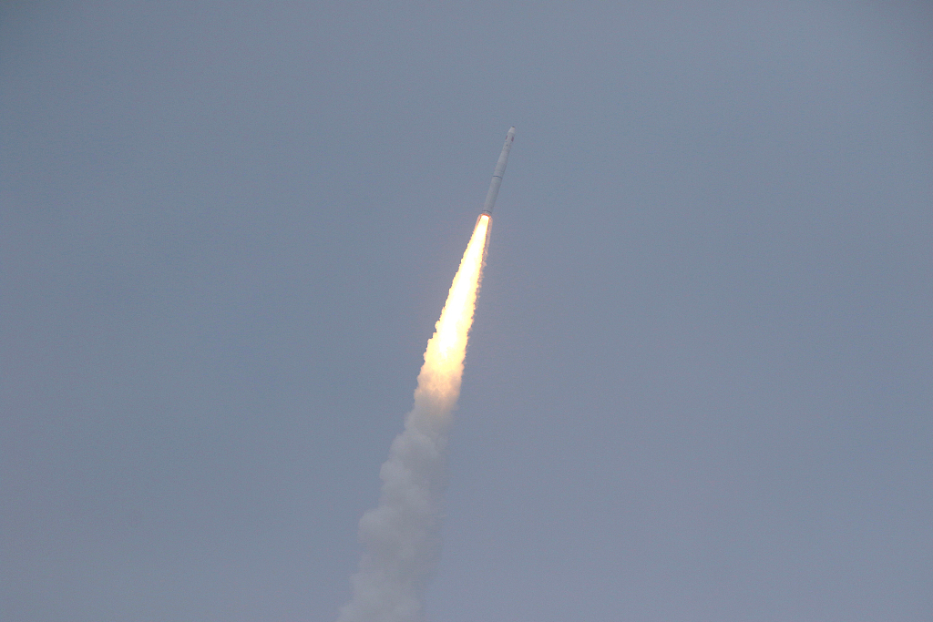 A Long March 11 solid-propellant carrier rocket blasted off at 12:06 p.m. Beijing time from a mobile launch platform – a modified submersible craft – in the Yellow Sea off the eastern province of Shandong. /VCG Photo