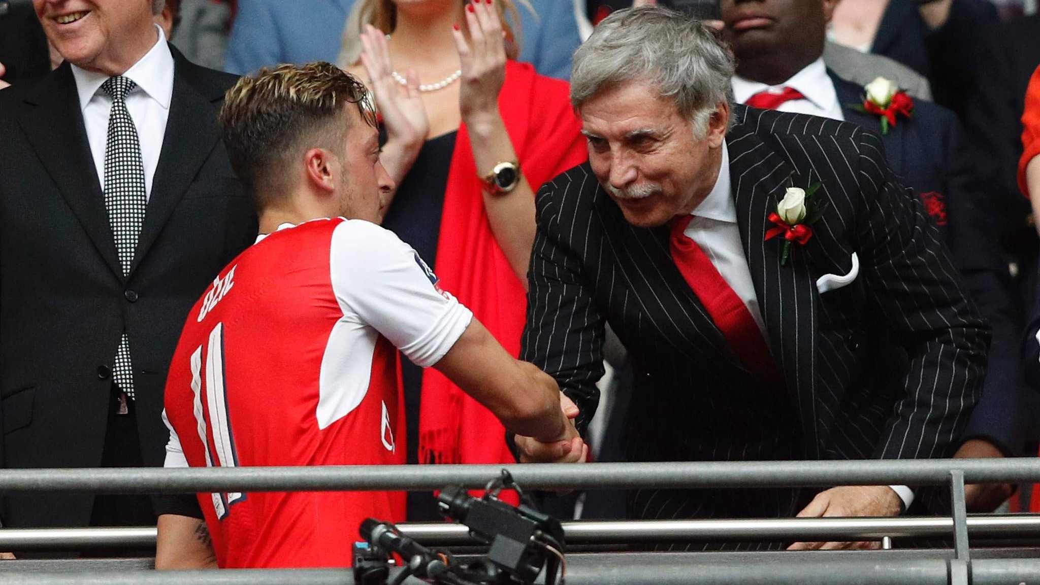 (Cover photo: Arsenal's US owner Stan Kroenke shakes hands with Arsenal's German midfielder Mesut Oezil, May 2017. /VCG Photo)