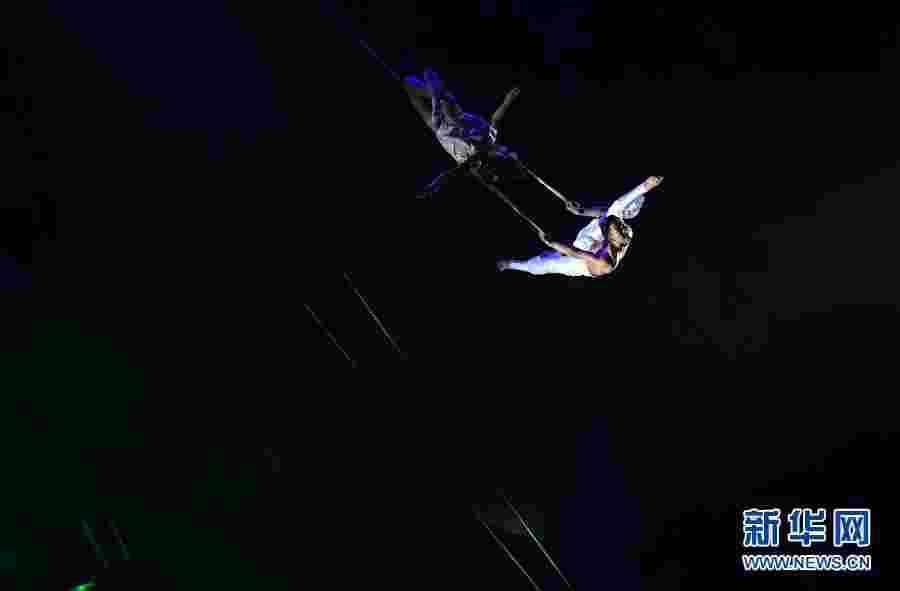 Two acrobatic actors showcase their skills at the 2018 Puyang International Acrobatics Art Festival in Henan, China, October 16, 2018. /Xinhua Photo