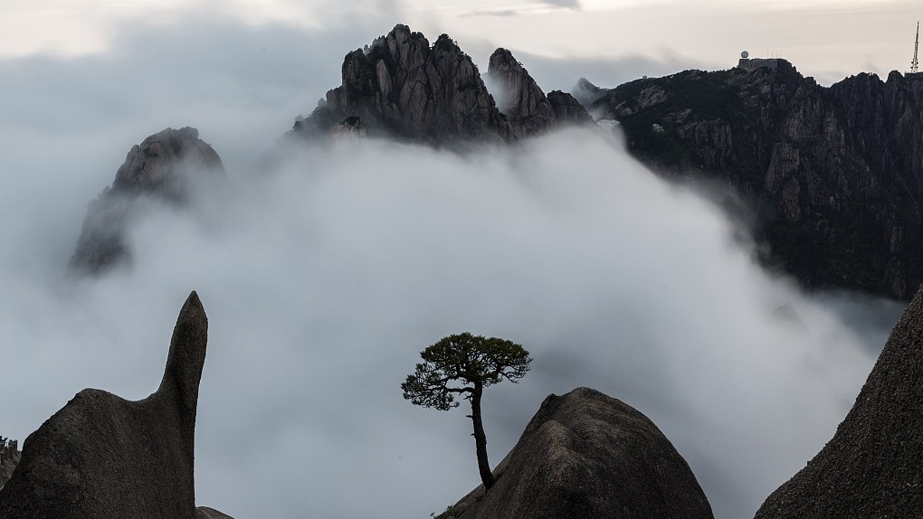 Located in east China's Anhui Province, the mountain range is famous for its magnificent views of granite peaks, oddly-shaped rocks, ancient pines, sunrise and sunset amid clouds.