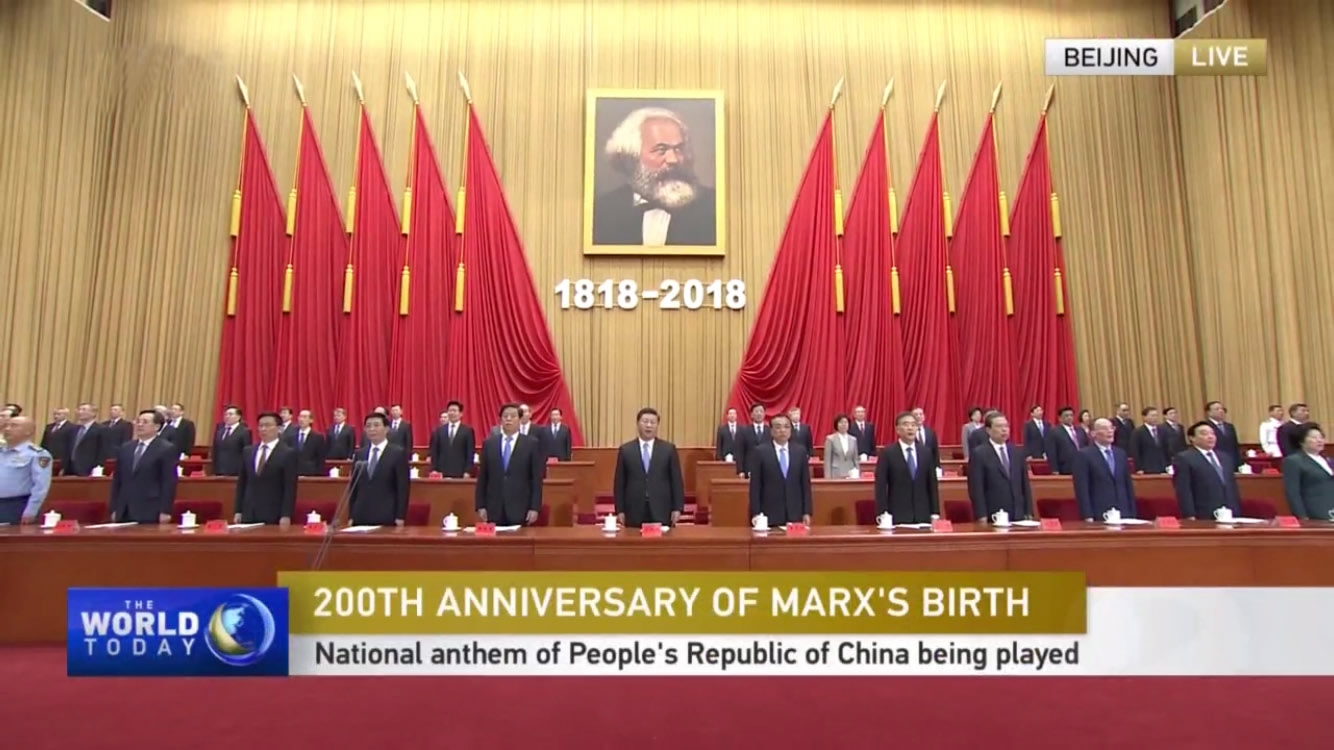 Chinese President Xi Jinping, also general secretary of the Communist Party of China Central Committee and chairman of the Central Military Commission, delivered a speech at a conference to mark the 200th anniversary of the birth of Karl Marx on Friday morning. At the beginning of the conference, all committees stood up to sing the National Anthem of the People’s Republic of China.
