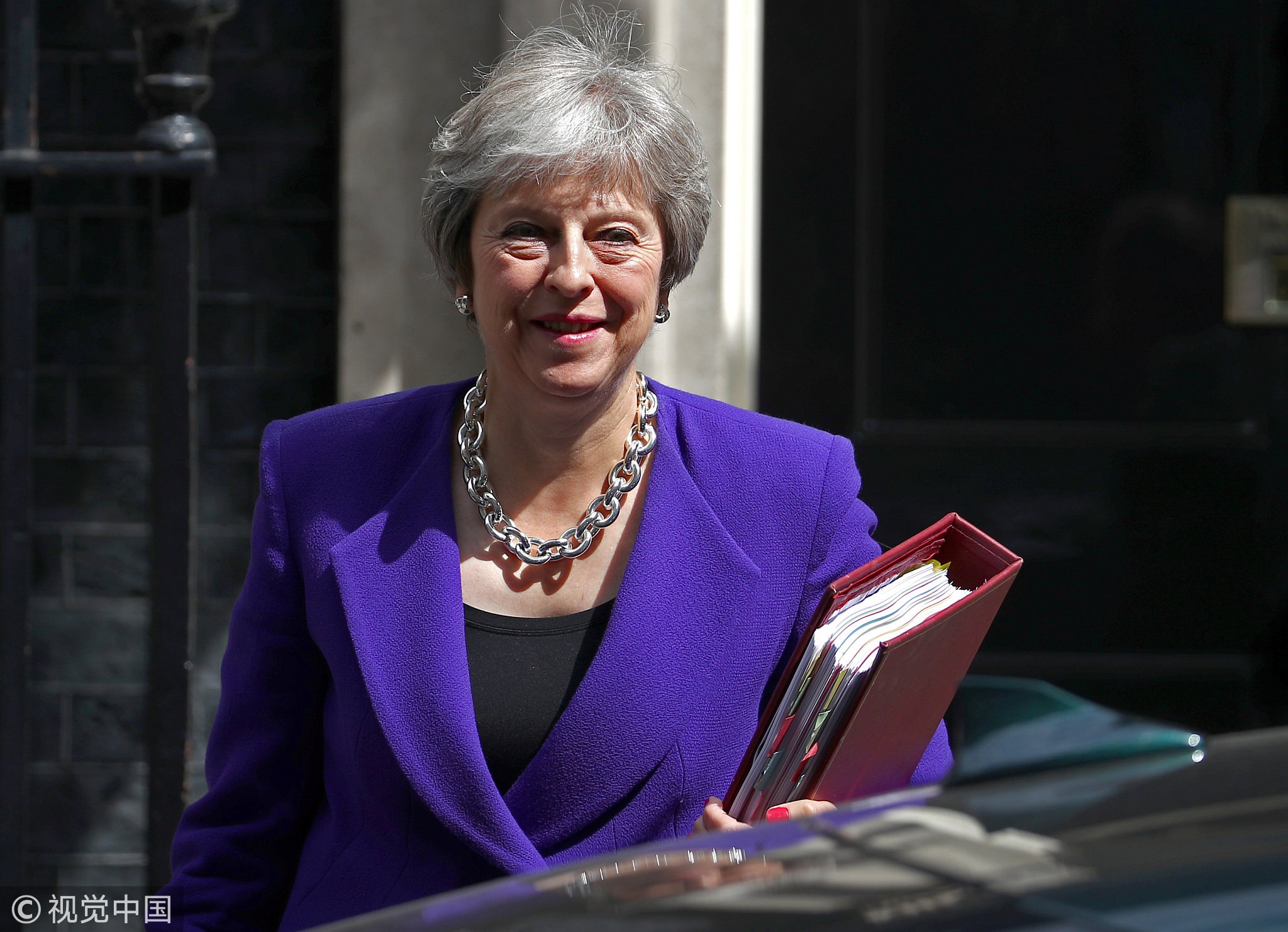 Prime Minister May left 10 Downing Street to attend Prime Minister Questions in the House of Commons in London on July 18, 2018. /VCG Photo