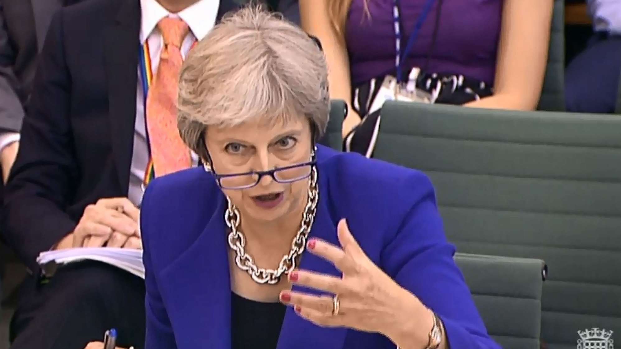 Theresa May as she speaks before the Liaison Committee in the House of Commons in London on July 18, 2018. /VCG Photo