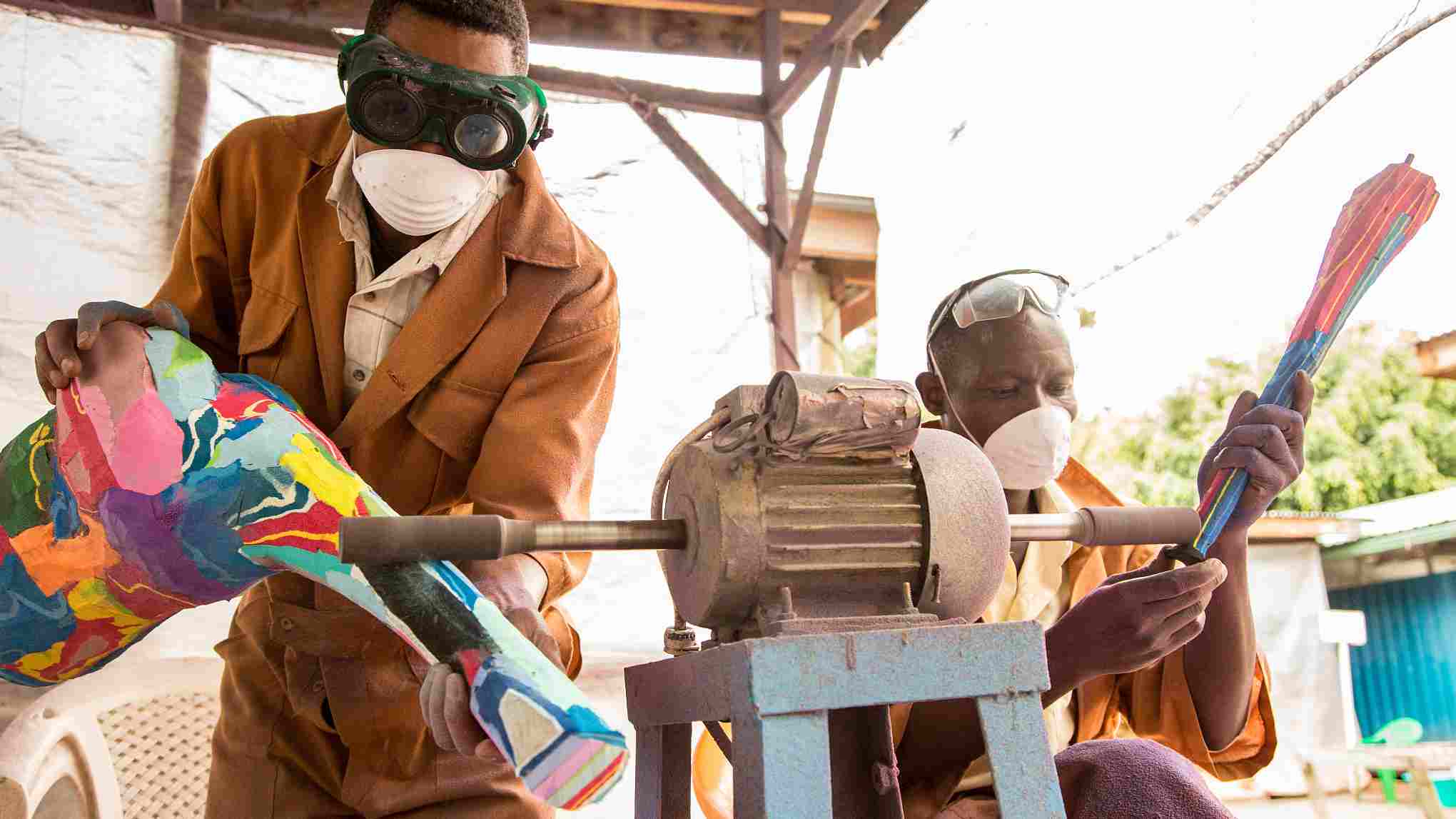 Church has been encouraging people to transform their discarded items into sculptures, which are displayed on beaches across Kenya to raise awareness about marine ecosystem protection. /VCG Photo