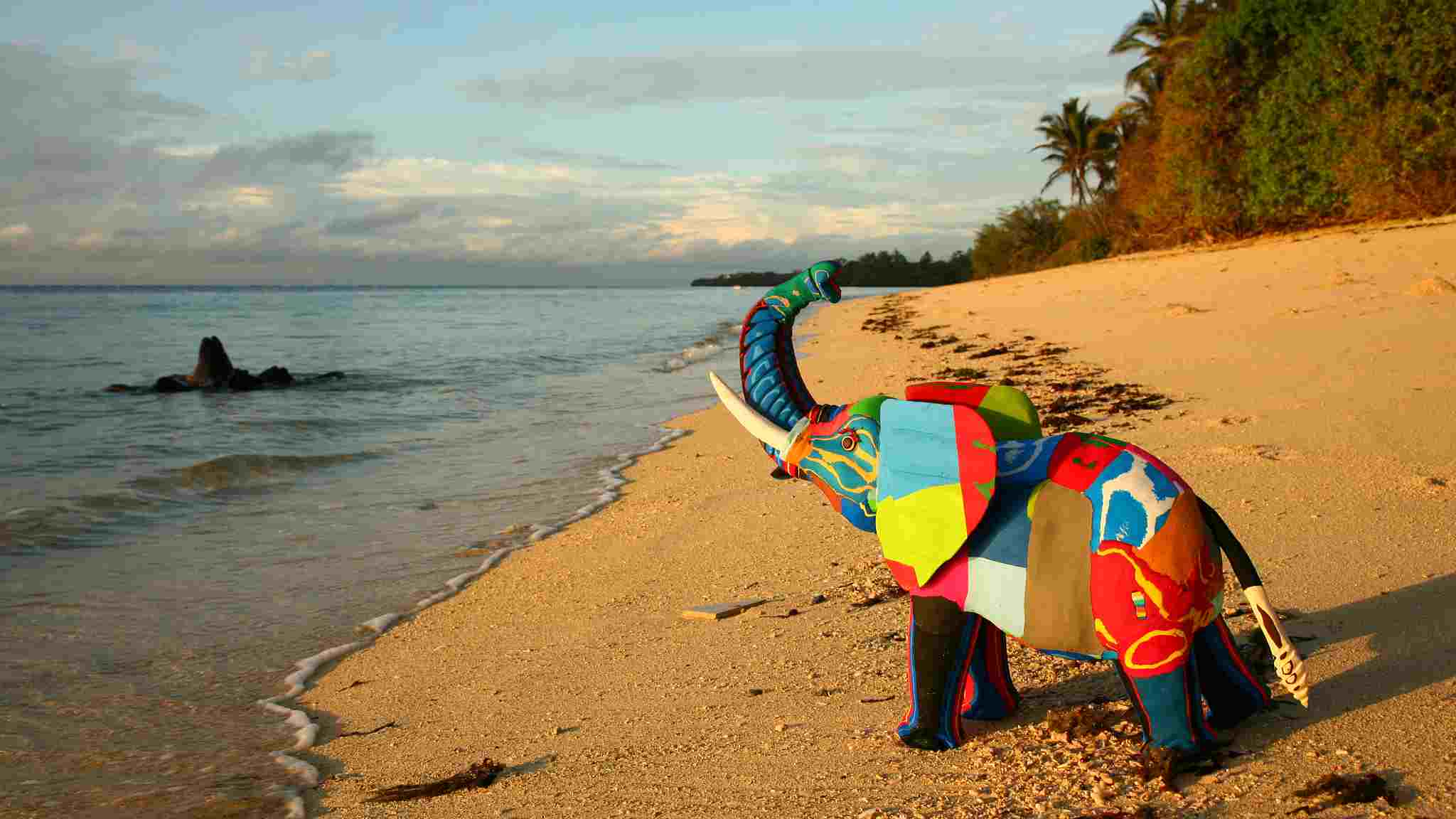 If you walk along the coast of east Africa, you may see elephants, rhinos and giraffes created from colorful blocks. These are not new species, but artworks created by Kenyan environmental protectors. /VCG Photo
