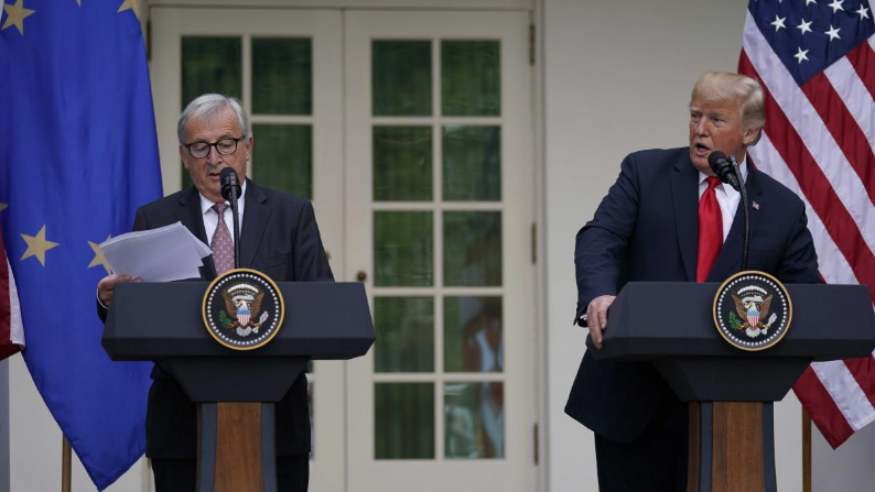 “As long as we are negotiating, unless one party would stop the negotiations, we will hold off further tariffs,” Juncker said. “And we will reassess the existing tariffs on steel and aluminum.”