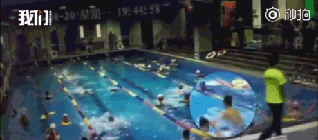 Surveillance footage showed Qiao smacking the boy who allegedly harassed his wife in the pool. /Screenshot via Weibo