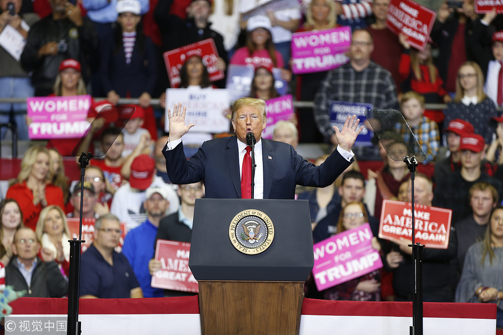 U.S. President Donald Trump campaigns for Indiana congressional candidates in Fort Wayne, Indiana, U.S., November 5, 2018. /VCG Photo