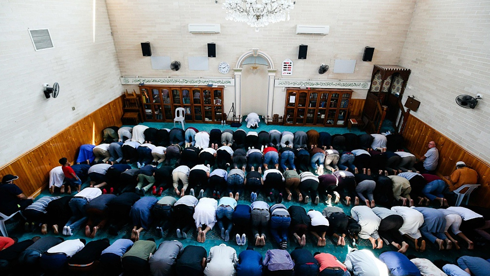 Muslims offer prayers as local community gather to pay their respects for the Christchurch mosques victims during an Open Day at Preston mosque in Melbourne, March 17, 2019. /VCG Photo