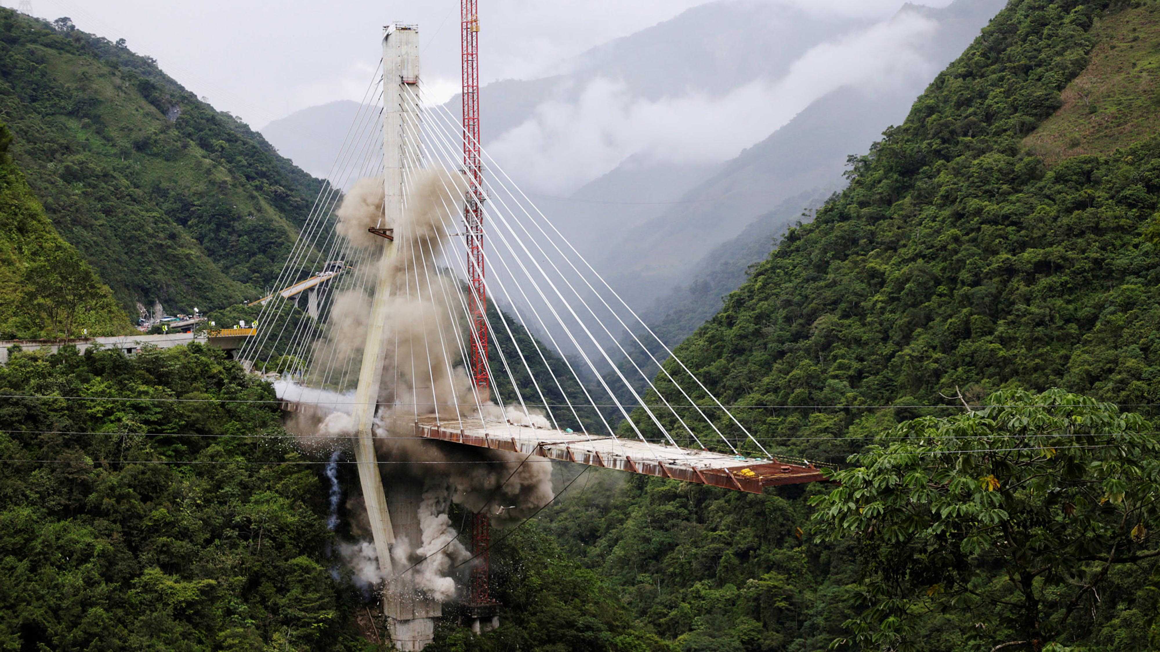 Colombia on Wednesday demolished the remains of the Chirajara Bridge, which had collapsed on January 15 because of design failures, killing ten workers.