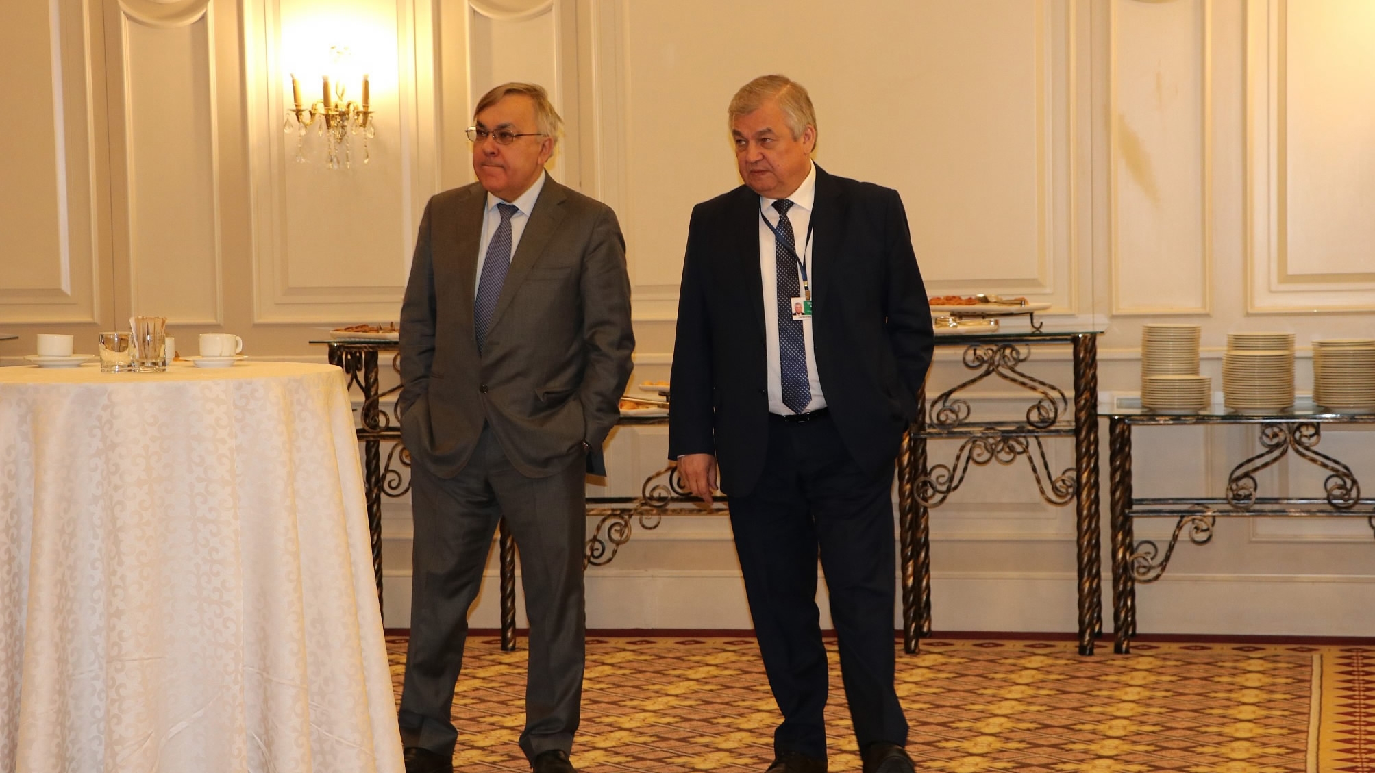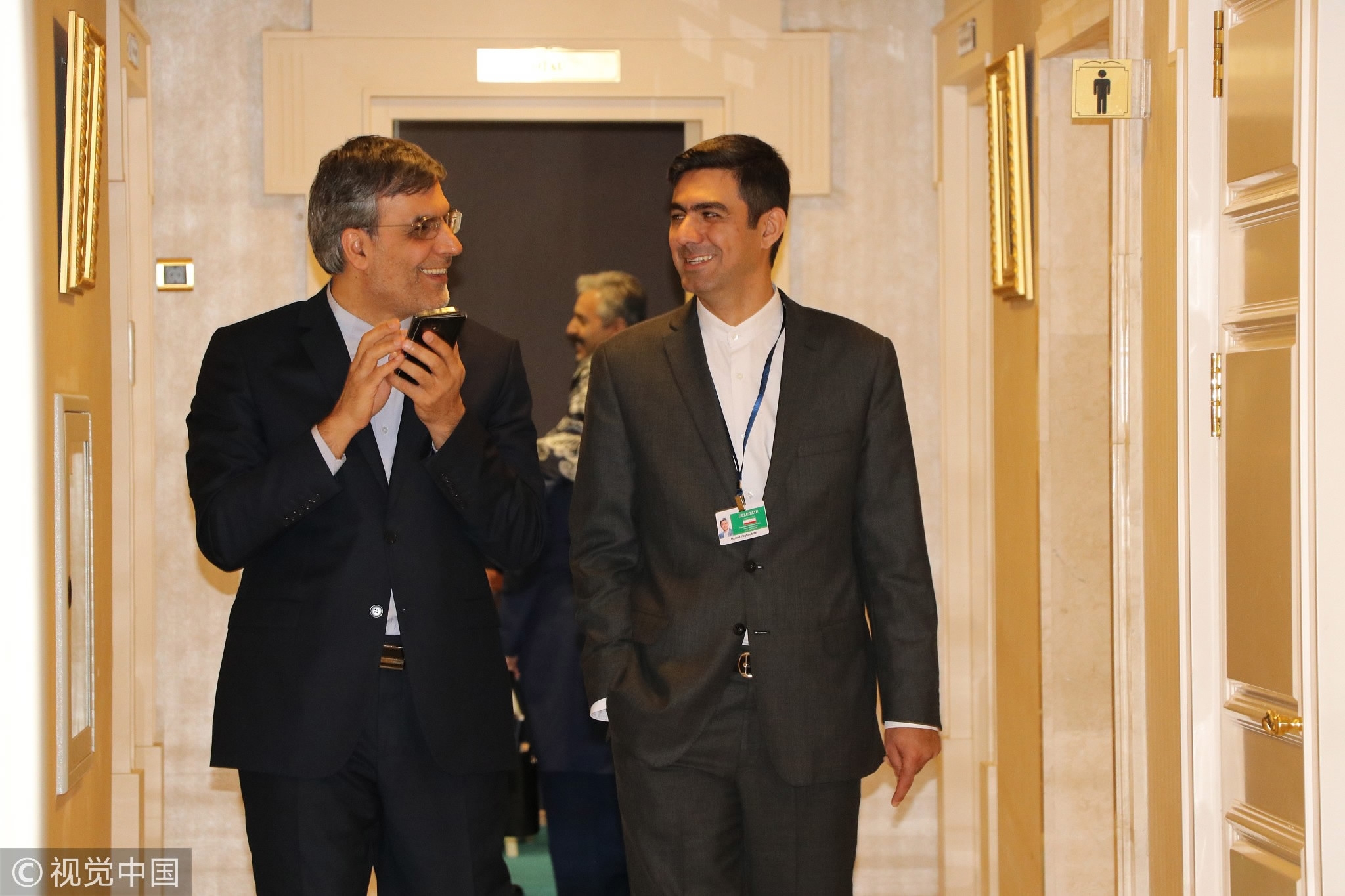 Deputy Foreign Affairs Minister of Iran Hossein Jaberi Ansari (L) attends the 9th round of Astana talks on Syria, May 14, 2018, in Astana, Kazakhstan. /VCG Photo