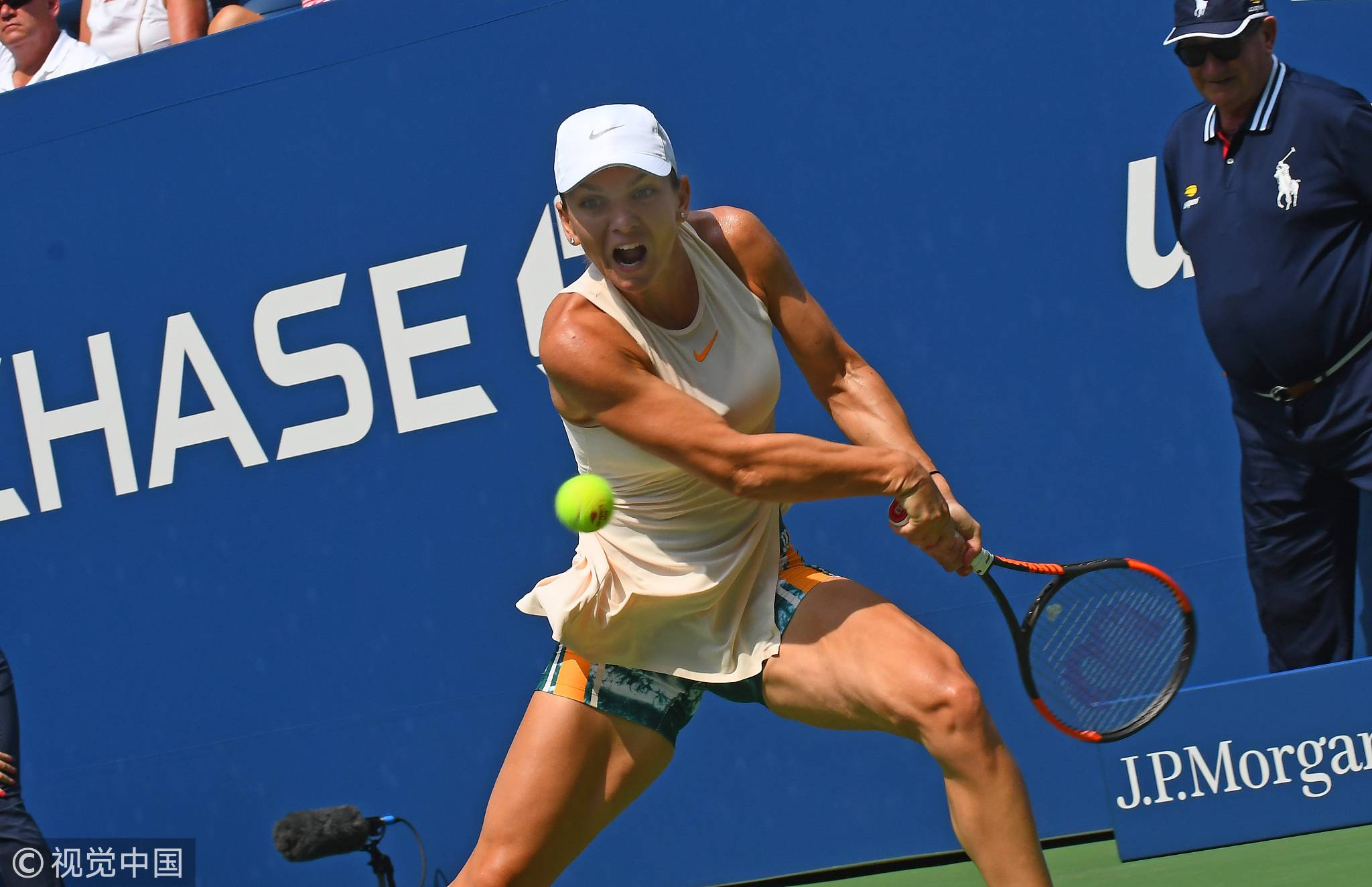 Simona Halep in action in the first round of the US Open at the Billie Jean King National Tennis Center in New York, August 27, 2018. /VCG Photo