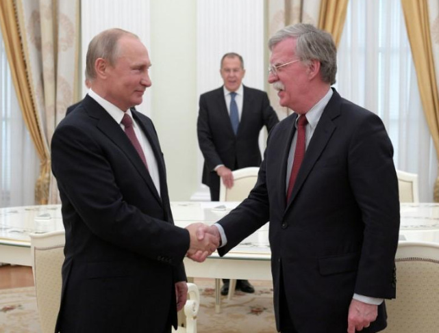 FILE PHOTO: Russian President Vladimir Putin (L) meets with US National Security Adviser John Bolton in Moscow, Russia, June 27, 2018. /Reuters Photo