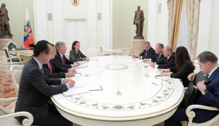 Russia's President Vladimir Putin, US National Security Adviser John Bolton and members of the delegations attend a meeting in Moscow, Russia, June 27, 2018. /Reuters Photo