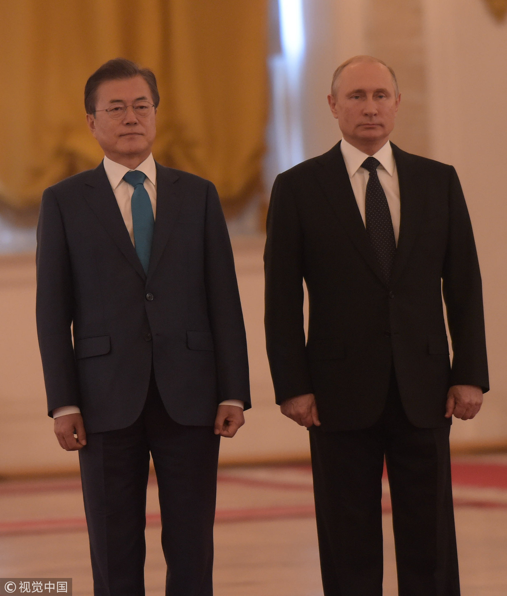 Russian President Vladimir Putin meets ROK President Moon Jae-in at the Kremlin in Moscow, Jun 22, 2018. /VCG Photo