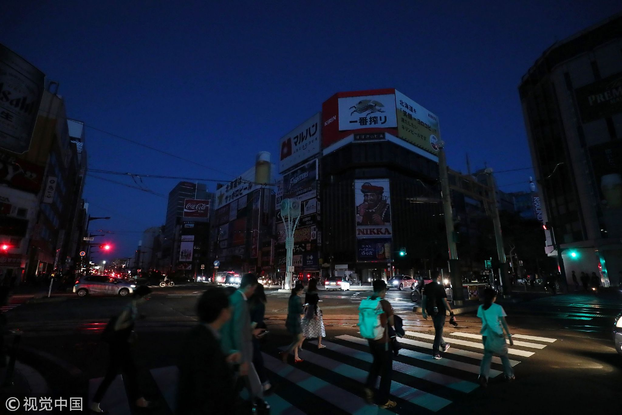 Quake-affected residents walk during an electrical blackout at the shopping district in Sapporo after an earthquake hit the northern Japanese island of Hokkaido on September 6. /VCG Photo