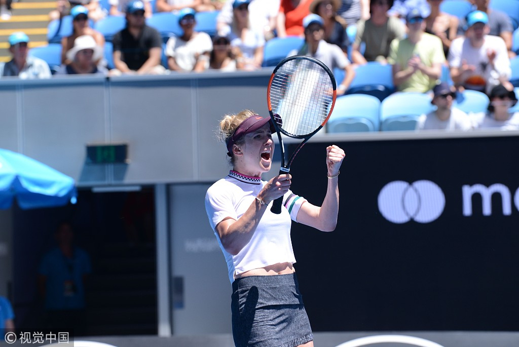 Elina Svitolina of Ukraine gestures during her women's singles match against Madison Keys of the U.S. at 2019 Australian Open. /VCG Photo