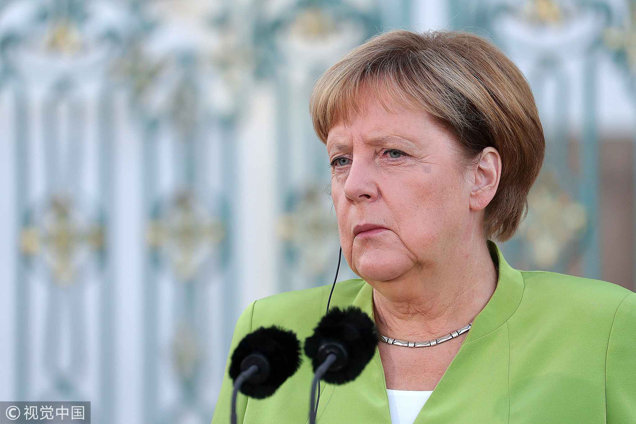 Angela Merkel, Germany's chancellor, listens to a question during a joint press conference at Schloss Meseberg castle in Meseburg, Germany, on Saturday, August 18, 2018. /VCG Photo