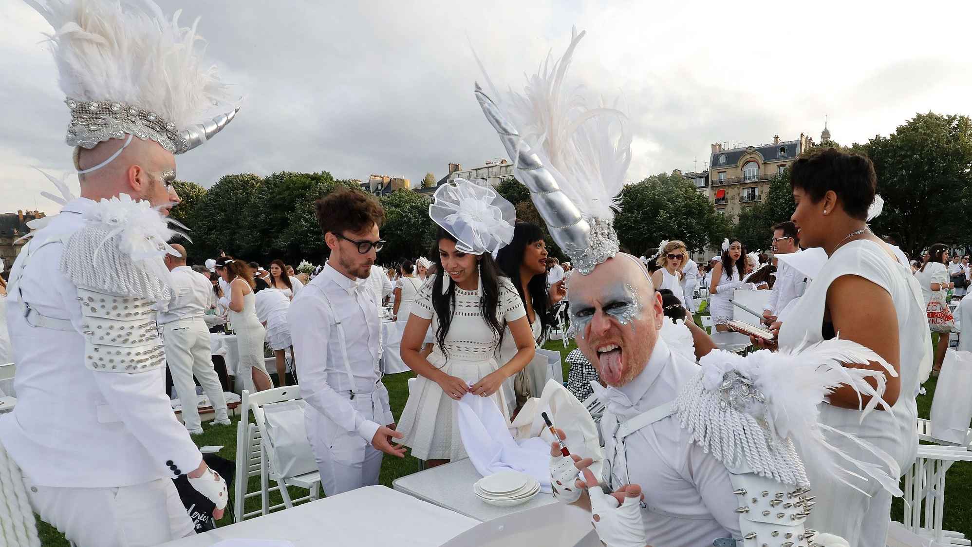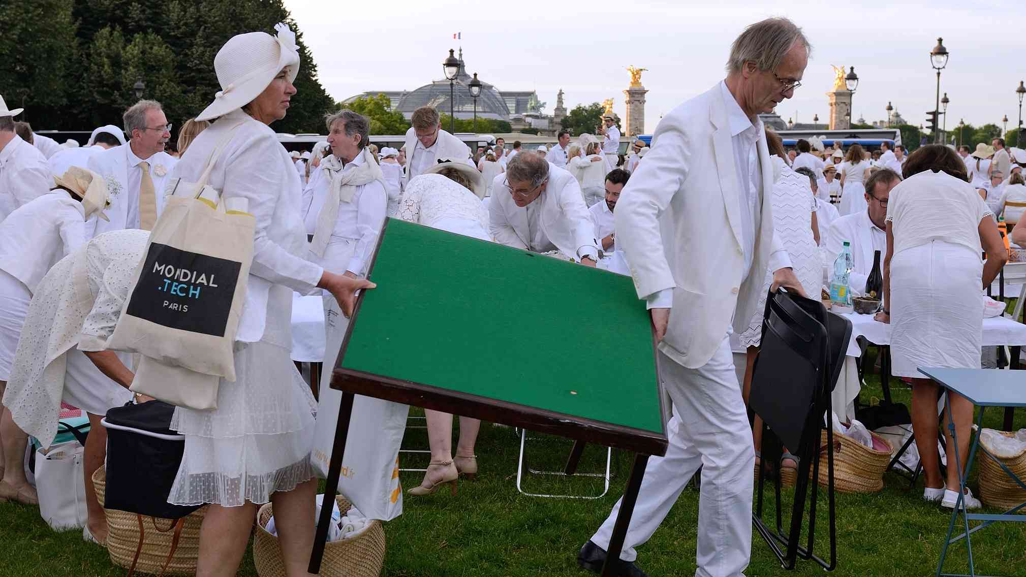 Les Invalides in Paris was chosen for the 30th edition of the "Diner en Blanc," or "Dinner in White." /VCG Photo