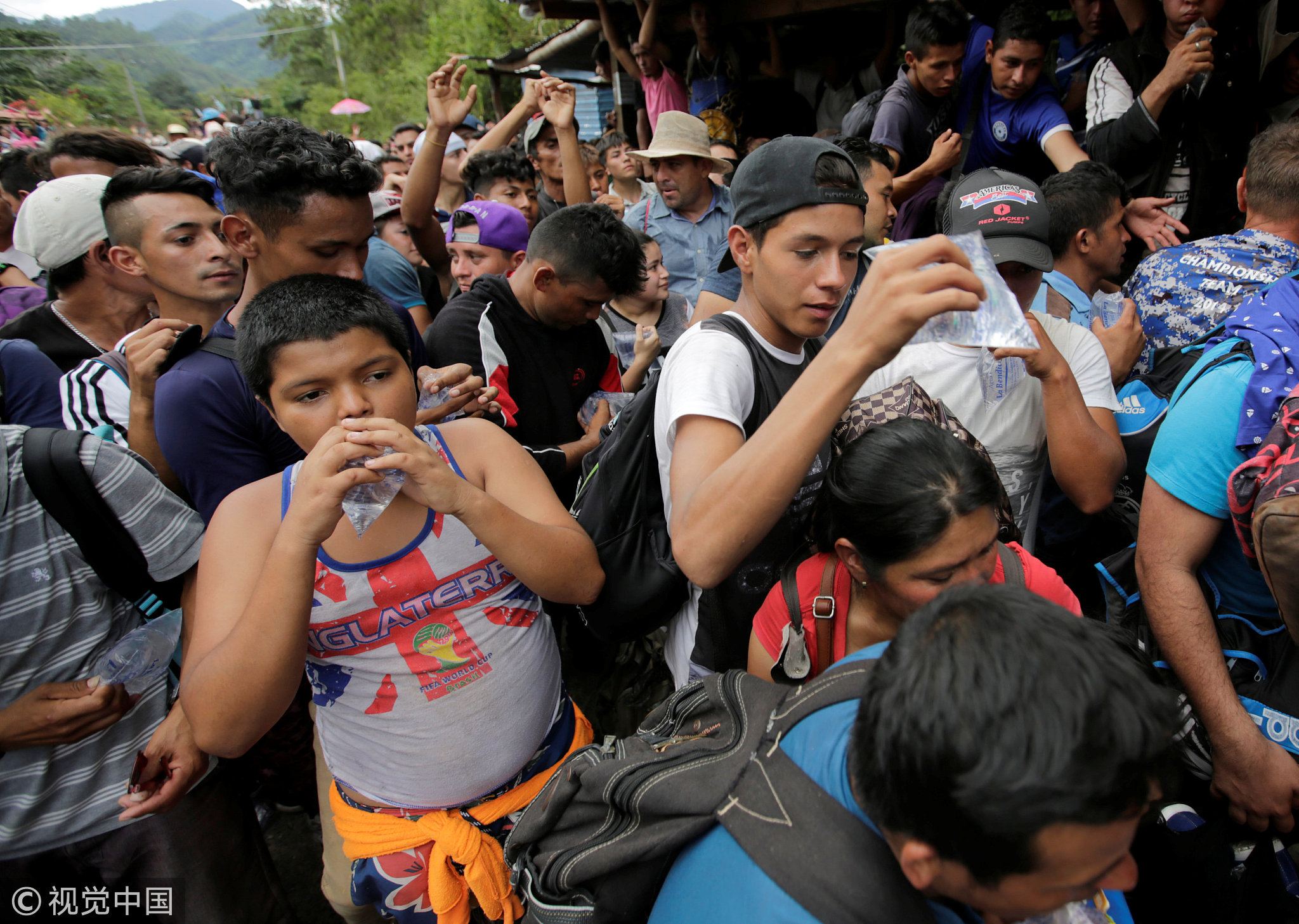 (Cover photo: Honduran migrants, part of a caravan trying to reach the US, gesture while arriving at the border between Honduras and Guatemala, in Agua Caliente, Guatemala, October 15, 2018. /VCG Photo)