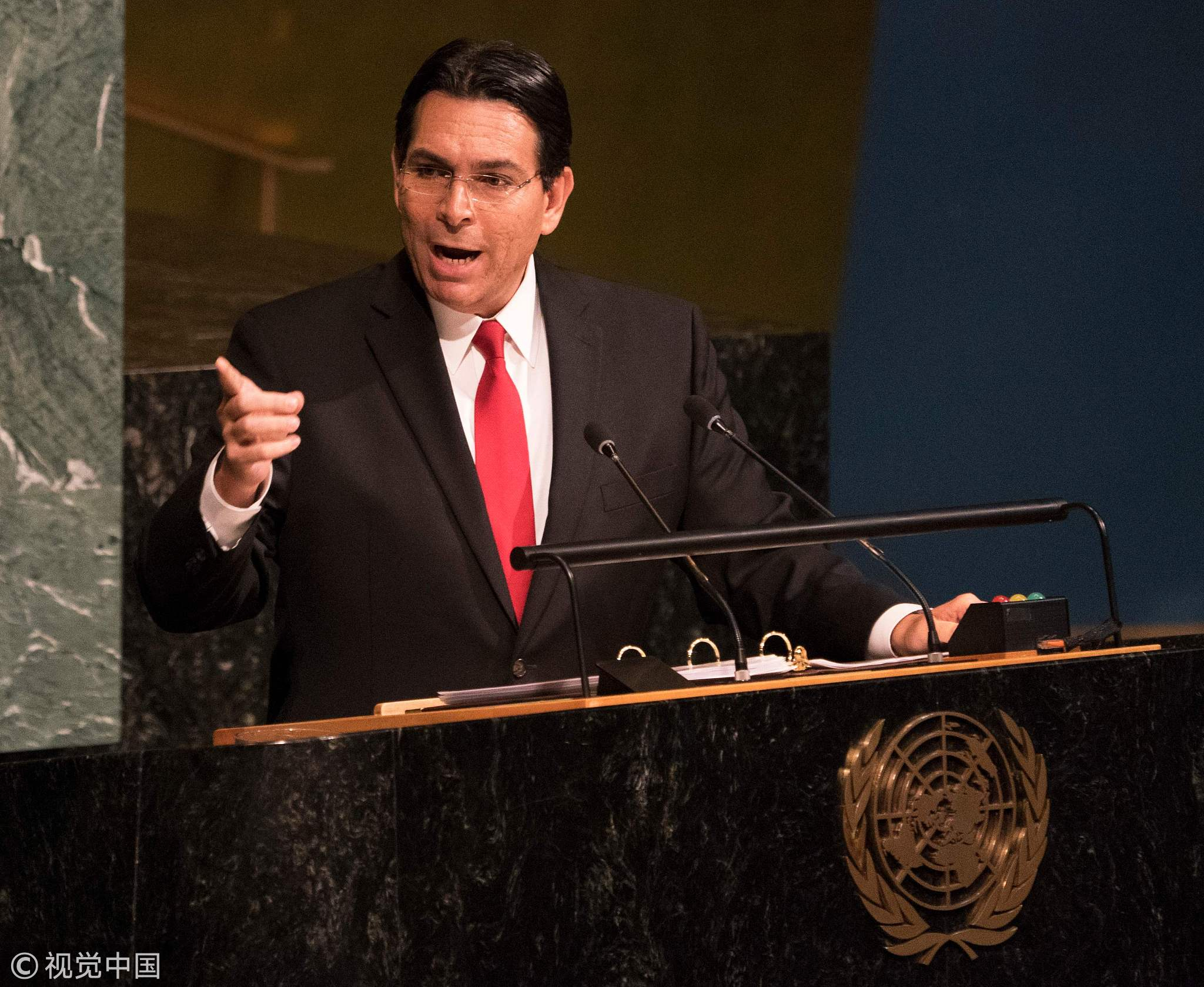 Israel's Ambassador to the United Nations Danny Danon speaks to the General Assembly before a vote, to deplore Israeli actions in Occupied East Jerusalem and the rest of the Occupied Palestinian Territory, in the General Assembly, June 13, 2018, in New York, US. /VCG Photo