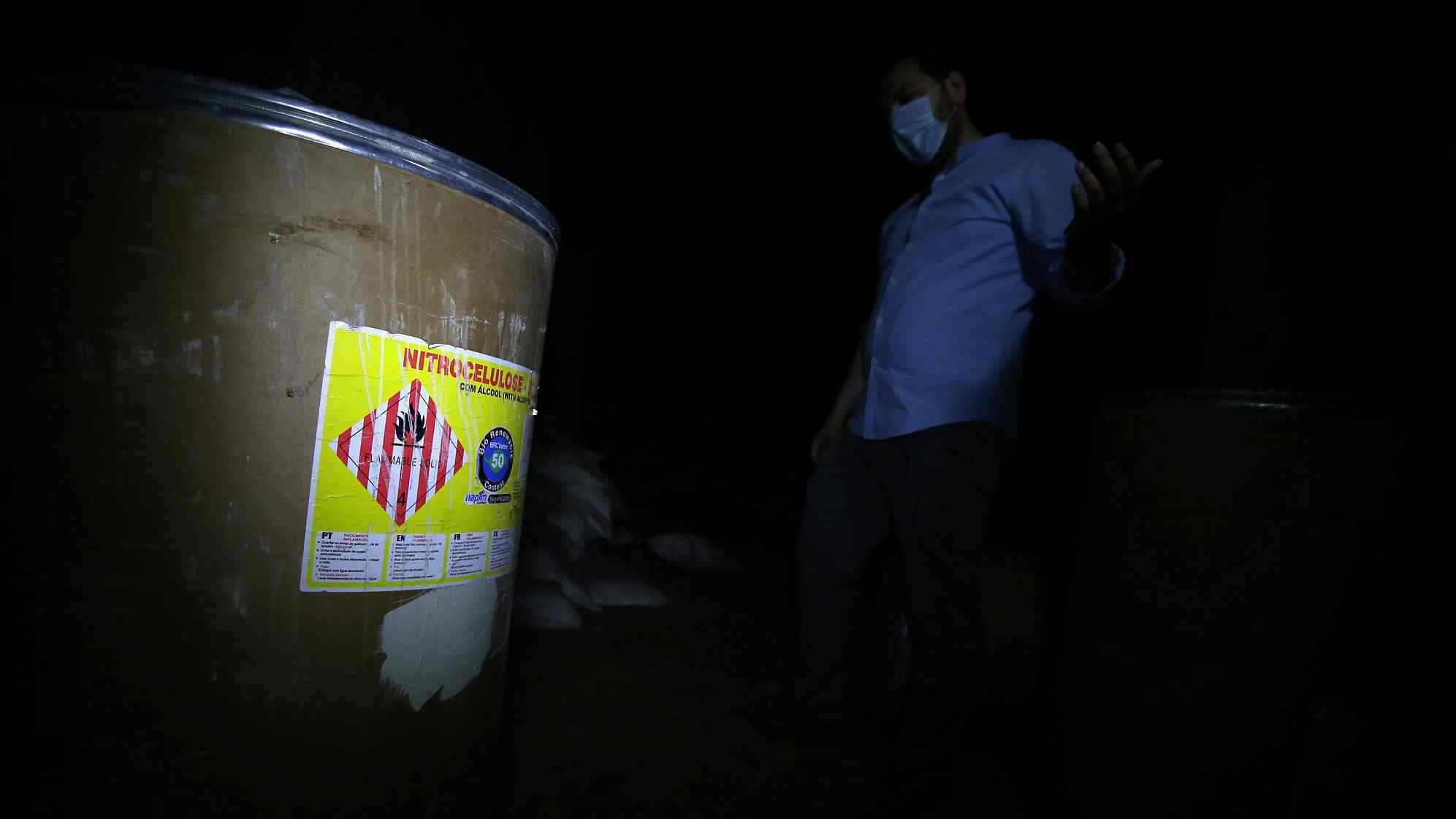 Chemical products are seen inside a former rebel position shown to journalists during a media tour in Douma near Damascus, Syria April 23, 2018. /VCG Photo