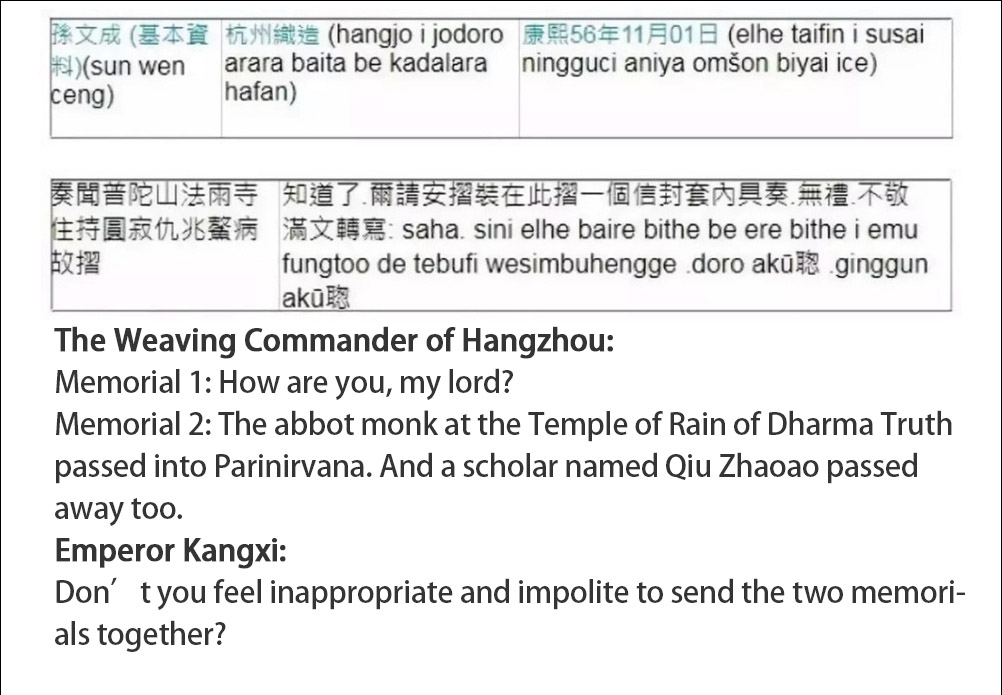 A list of memorials the Weaving Commander of Hangzhou sent to Emperor Yongzheng. It appears not the emperor’s fault to misunderstand the questions.