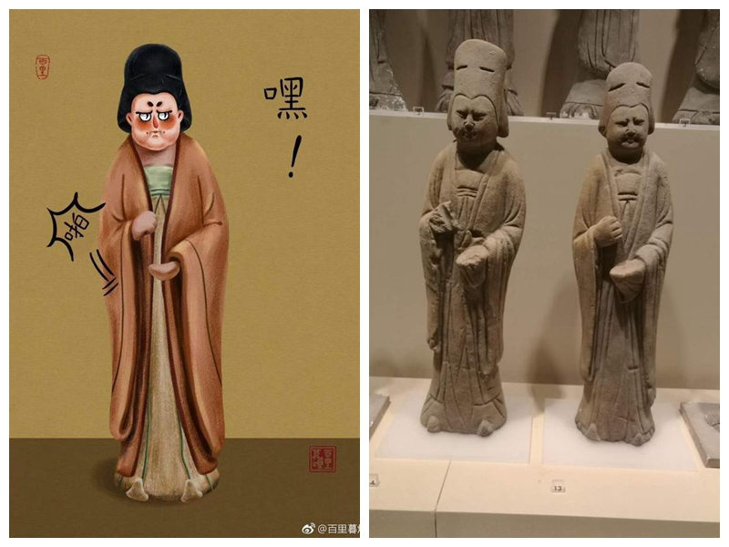 The painter was later found out to be Wang Congying, a fine arts teacher in Taizhou City, east China’s Zhejiang Province. She reveals that the inspirations for the set of paintings are from pottery figurines on display at Nanjing Museum, in the capital of the neighboring Jiangsu Province.