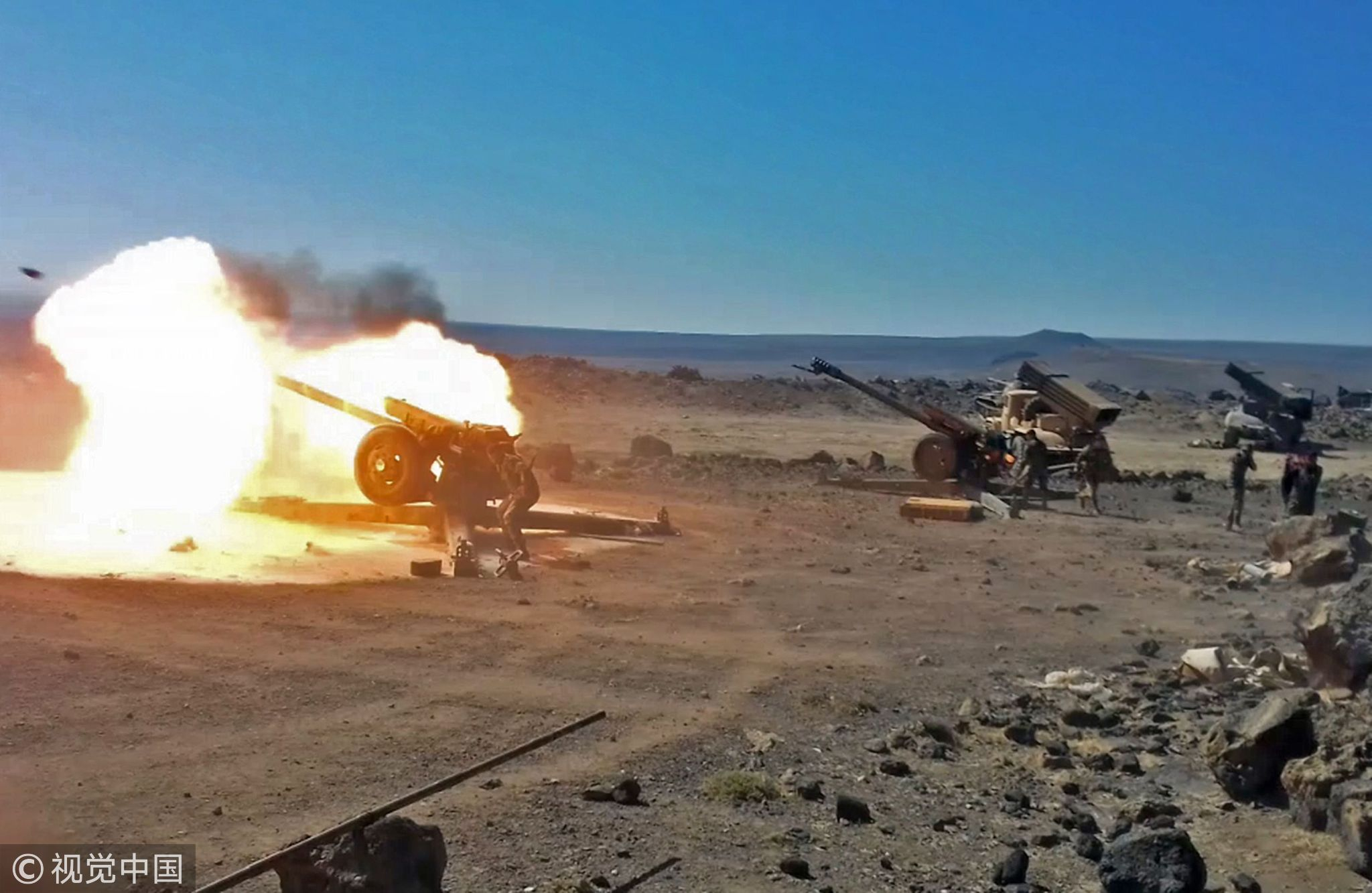 Syrian government artillery guns firing during a bombardment against ISIL. /VCG Photo