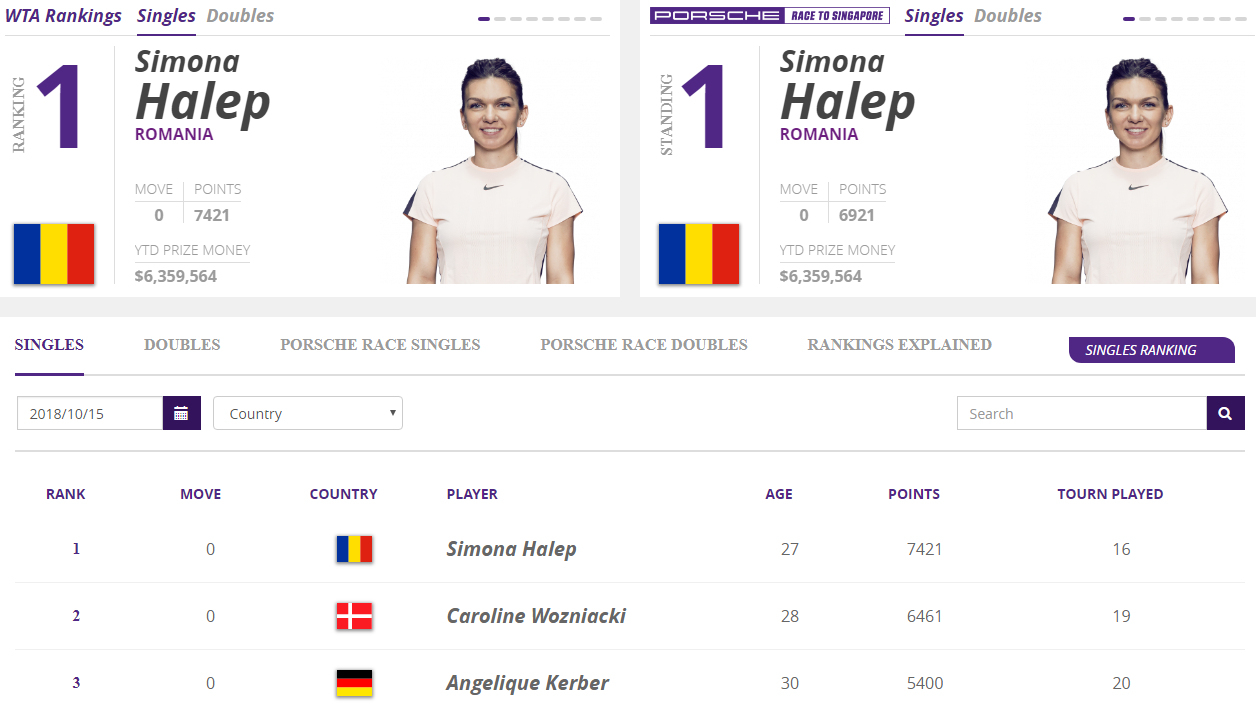Screenshot from WTA ranking page.