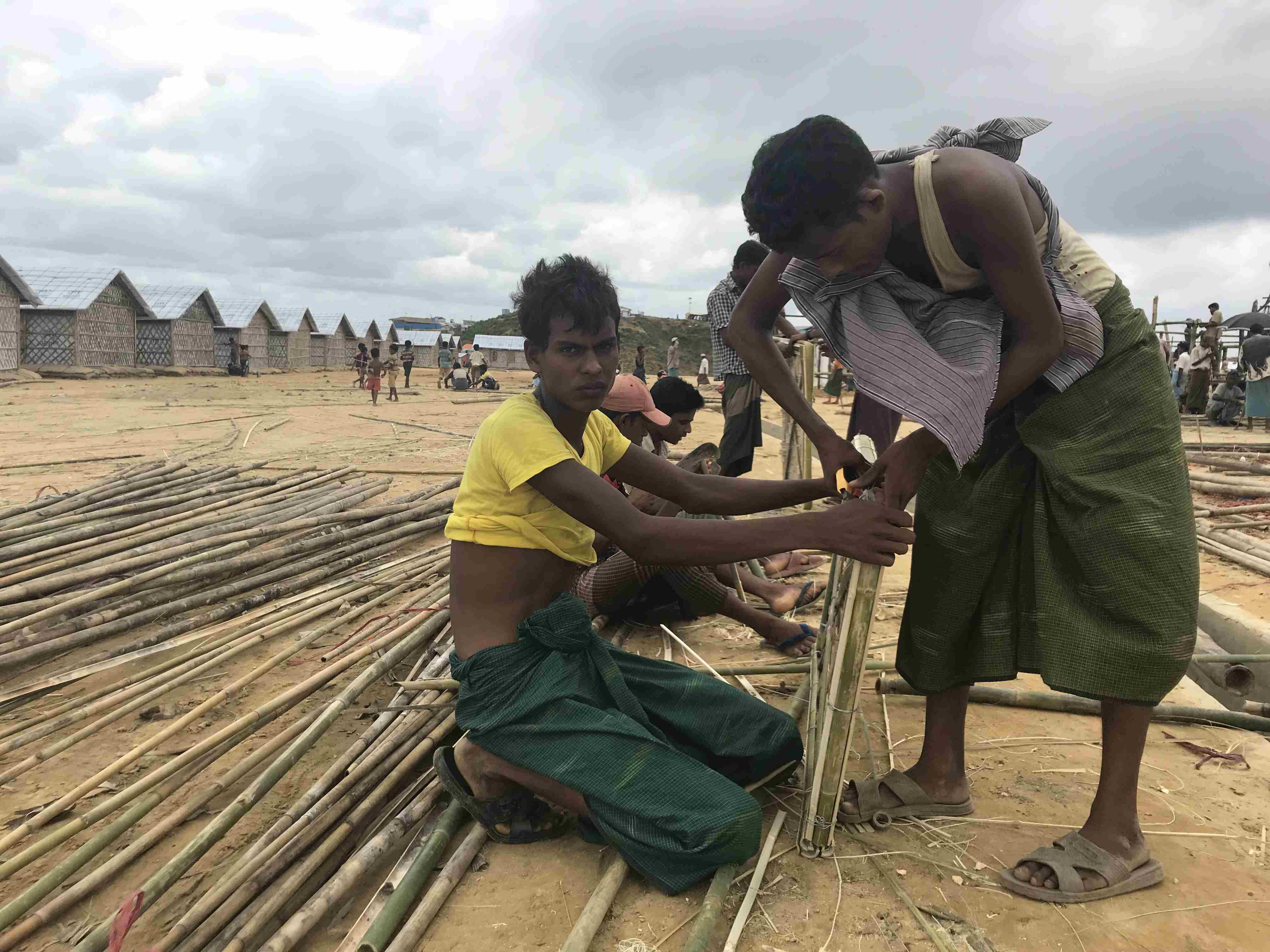 A visit to the camp explains why so much bamboo lies around. Refugees are living in flimsy shelters made from bamboo and tarpaulin. Some of the makeshift shelters are on hilly areas, and families living there are facing the threat of landslides.