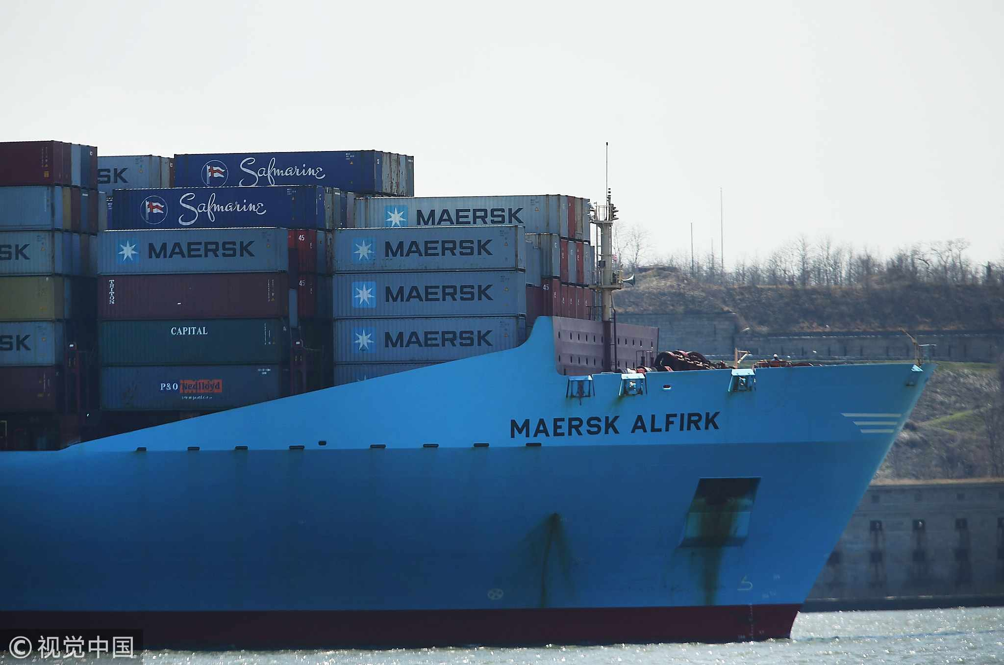 A cargo ship owned by Maersk arrives in the New York harbor in New York City, April 9, 2018. / VCG Photo