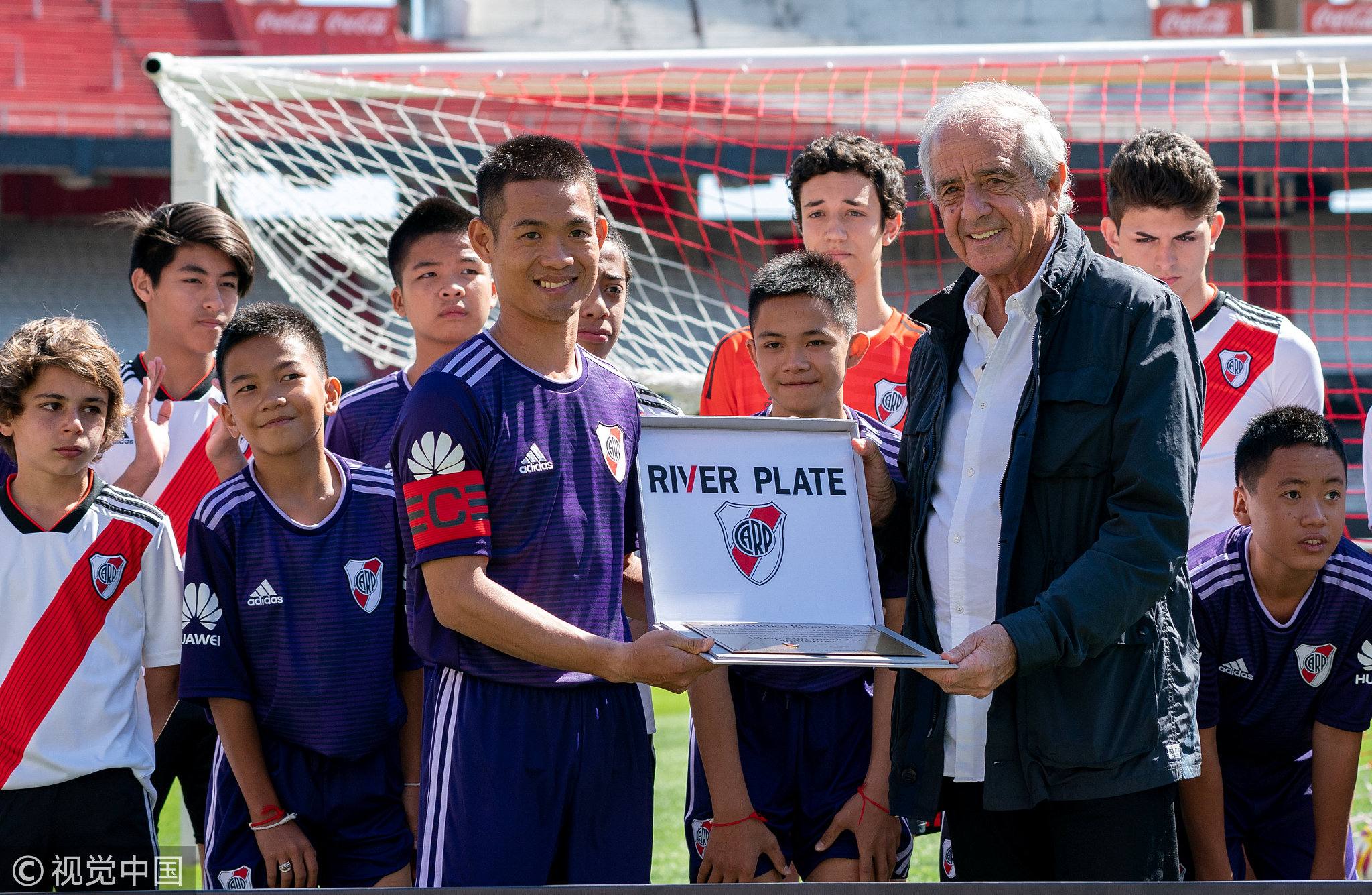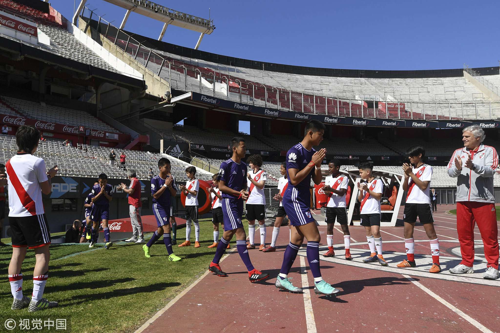 Members of the Wild Boars soccer team visit River Plate's Estadio Monumental stadium in Buenos Aires, Argentina, on October 7, 2018. /VCG Photo