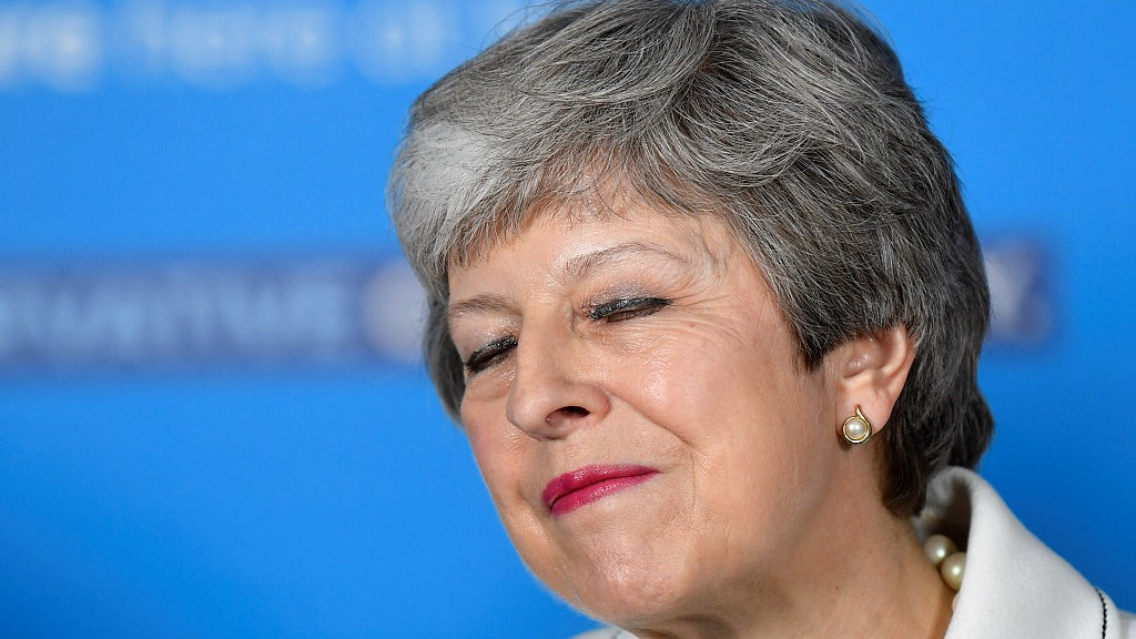 Britain's Prime Minister Theresa May gestures while speaking at an EU election campaign event in Bristol, England, May 17, 2019. /VCG Photo